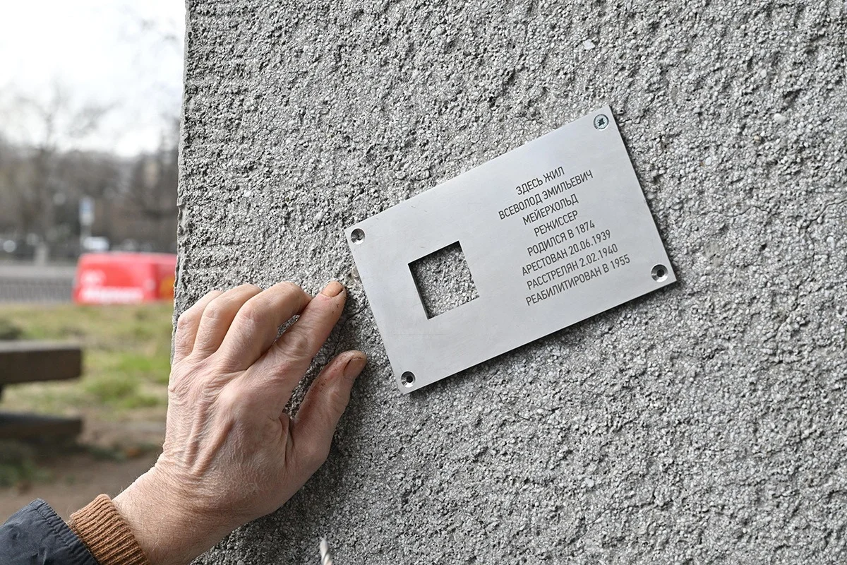 Табличку «Последнего адреса» установили 6 апреля. Заявителем ее установки стала Татьяна Праздникова, знавшая дочь Мейерхольда Ирину.