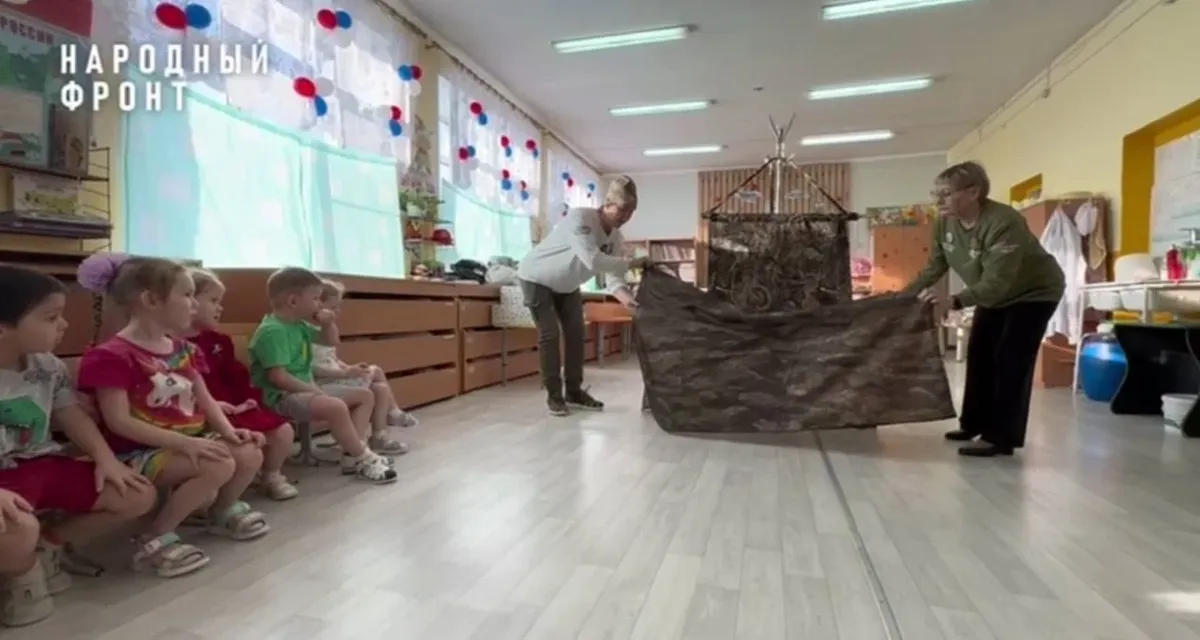 В Свердловской области поставили спектакль «Колобок и Чебурашка в волшебном камуфляжном лесу». Спектакль, организованный движением «Народный полк «Елкины заботы»», показывают в детских садах.