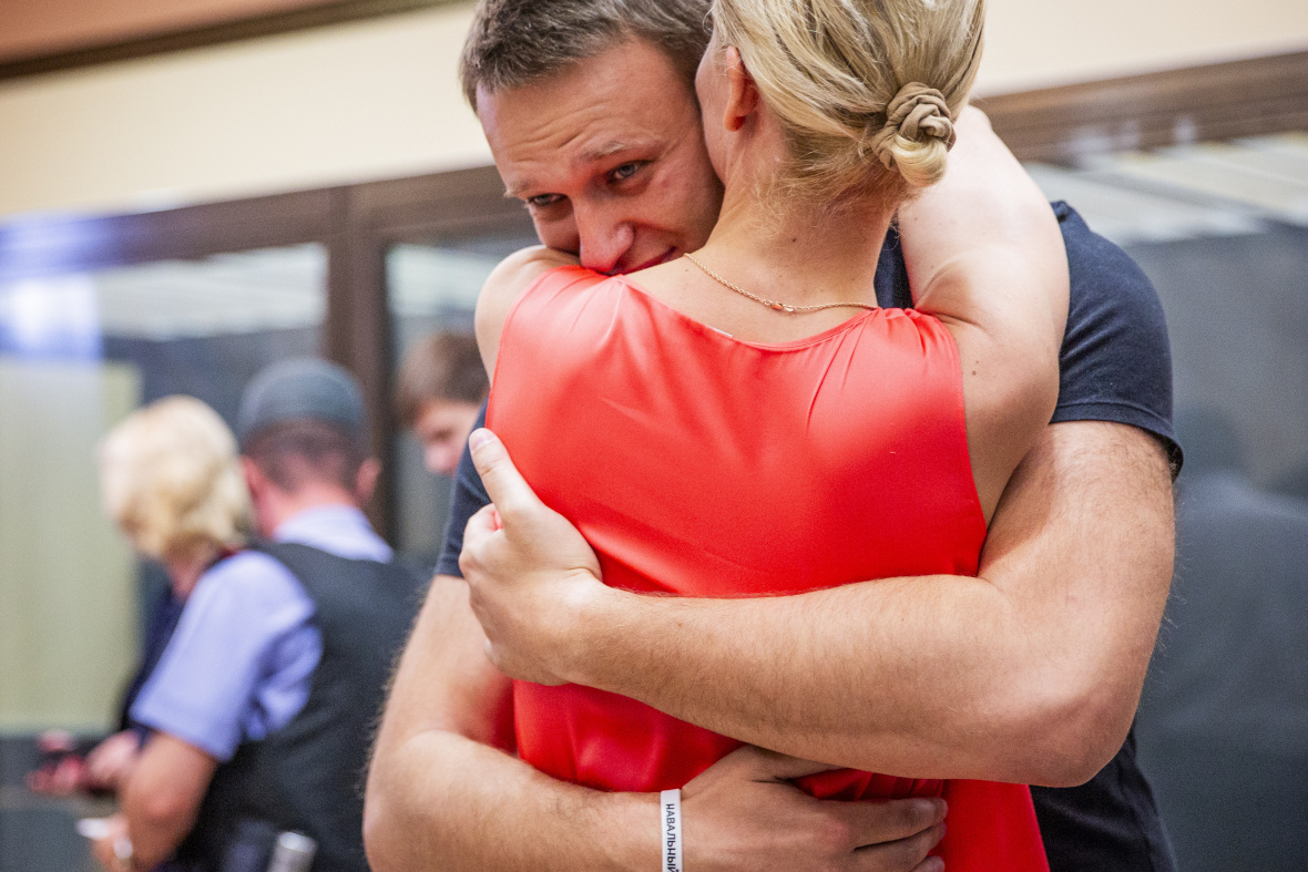 Алексей и Юлия Навальные после внезапного освобождения политика наутро после обвинительного приговора. Киров, 19 июля 2013 года