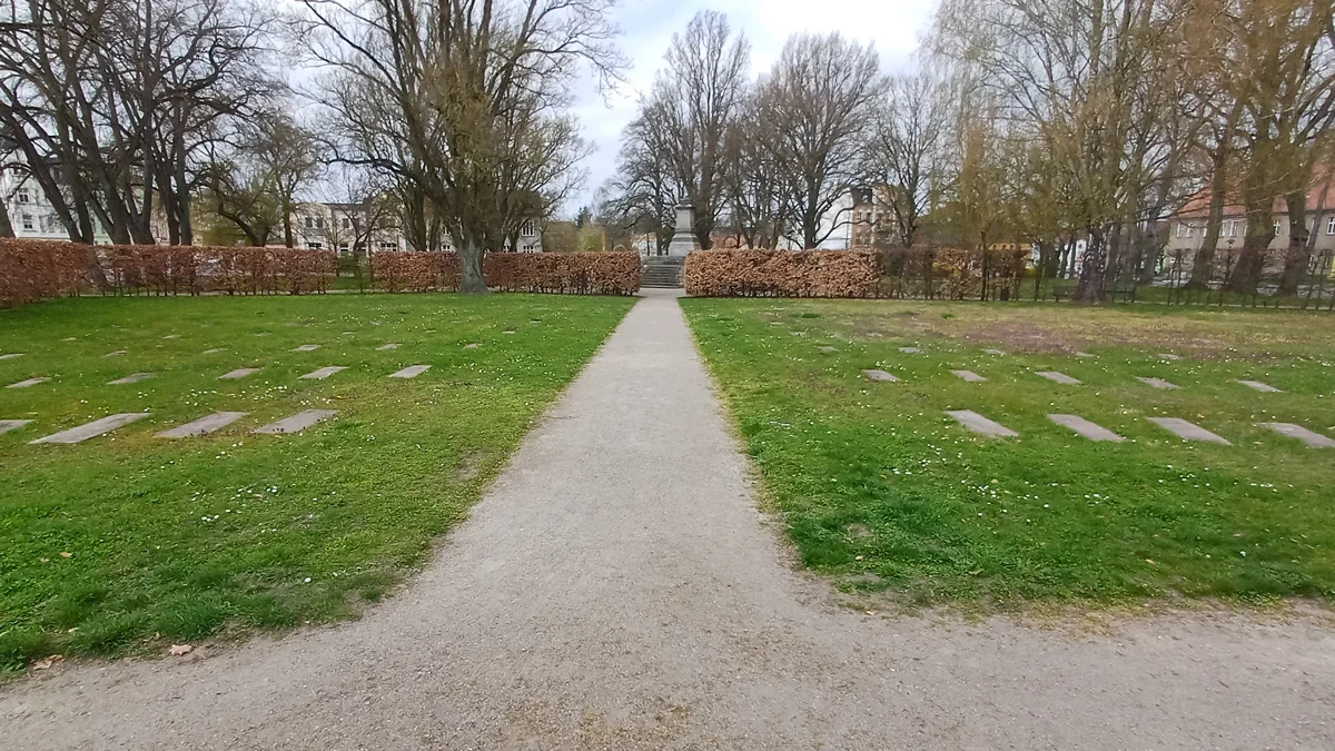 Есть и отдельный памятный камень (в прямом смысле: огромный валун) с табличкой: «В 1945 году более четырехсот детей стали жертвами голода и инфекций. Некоторые похоронены здесь». Среди покоящихся есть и умершие в ходе массового самоубийства, подсказывает мне фрау Мюнх, но из этических соображений на табличке это не указано.