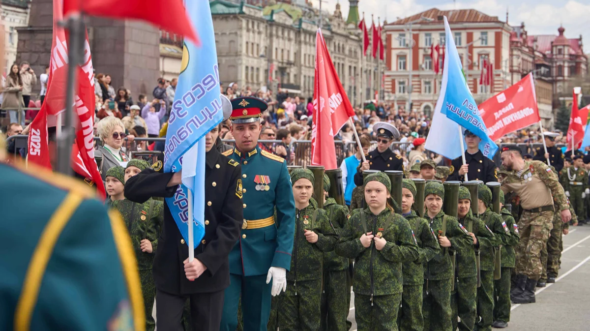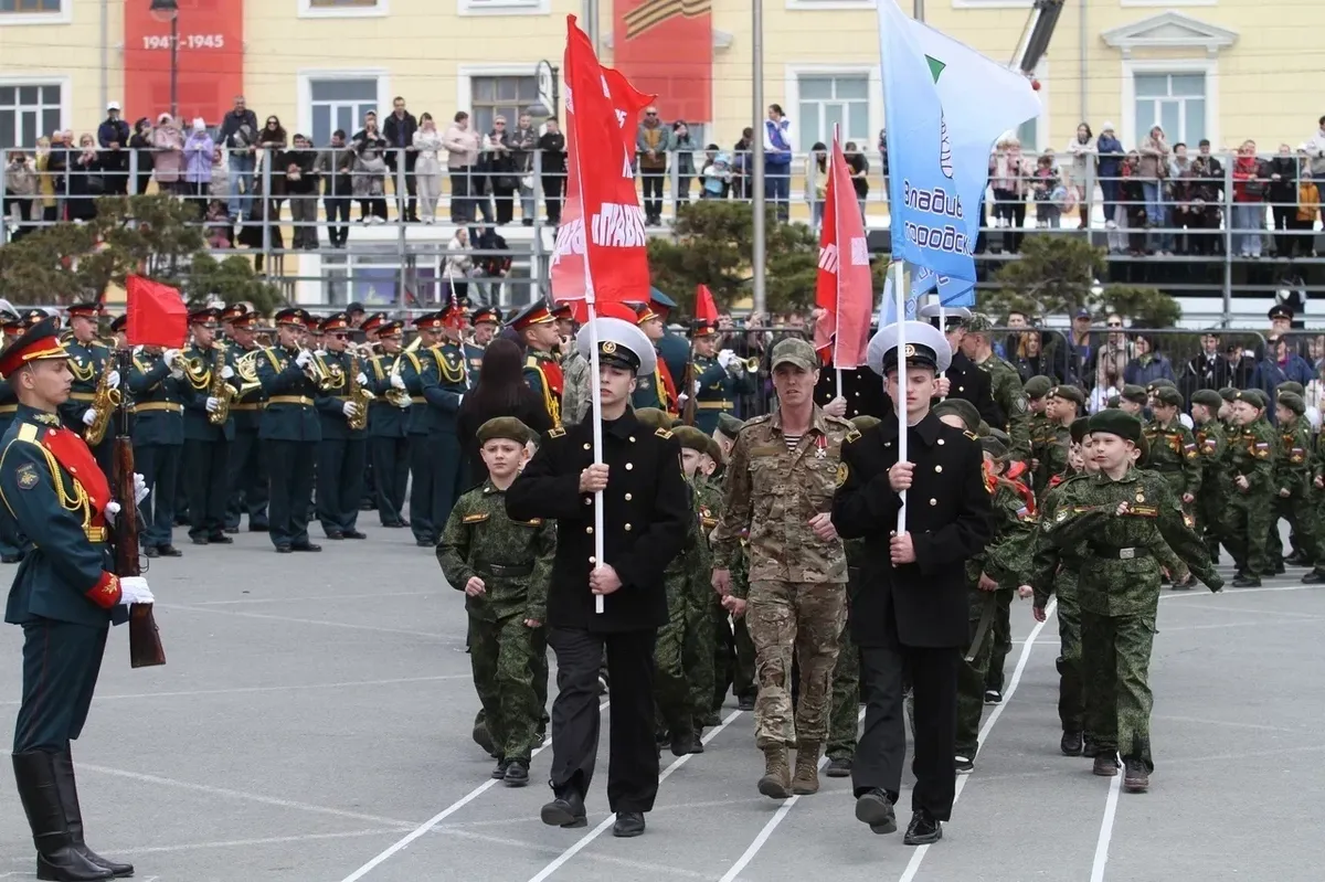 В честь 80-летия Победы во Владивостоке впервые провели детский парад перед 9 Мая, рассказал губернатор Приморского края Олег Кожемяко. По его словам, «парадными колоннами, символизирующими разные рода войск и добровольческие отряды», прошли более полутора тысяч учащихся начальных классов. Колонны возглавляли участники войны с Украиной — как действующие военные, так и «ветераны СВО».