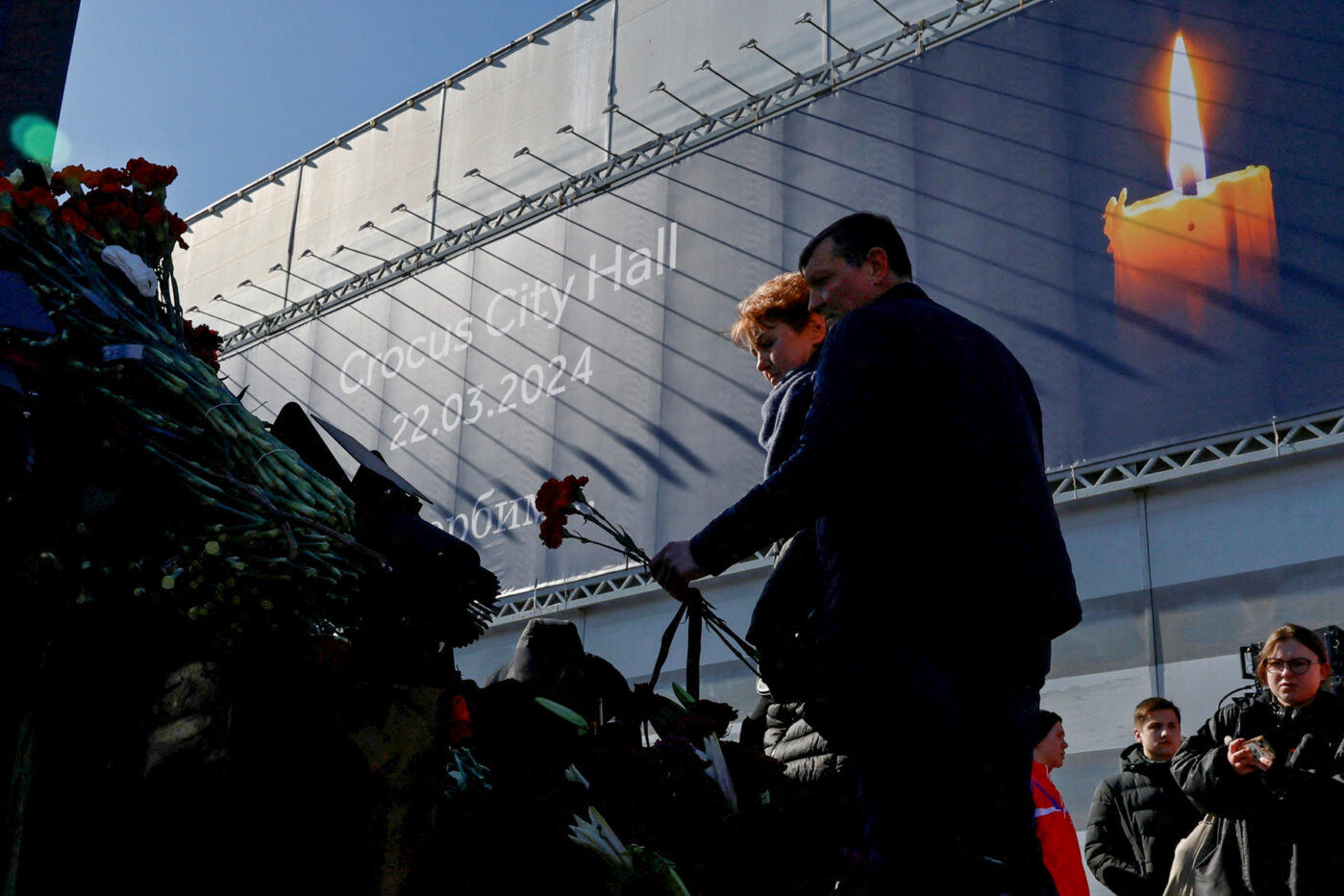 Люди возлагают цветы к открытому мемориалу жертвам теракта в «Крокус Сити Холл» в первую годовщину теракта 22 марта 2025 года. Фото: REUTERS/Yulia Morozova.