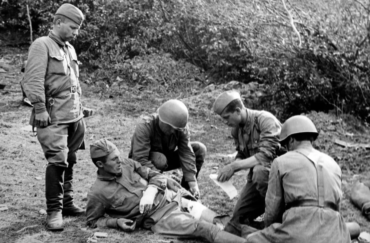 Ранен в четыре места и оглох ещё. Ноги болели. Осколок большой был. Я пополз и заблудился. Но потом увидел наших ребят, попросил врача. Меня — в землянку, перевязали. Сняли с меня валенки, дали мне какие-то ботинки с низким подъёмом и без шнурка. Надел на голую ногу. Поместили в пещеру со всеми ранеными. У меня забинтованы были обе ноги, обе руки. И я там целый день пролежал. Думал, что умру, потому что солдат не переправляли. Это была смертельная опасность для переправлявших. Выбиралось для этого самое тёмное время ночи. Но переправляли только офицеров, солдат не переправляли.