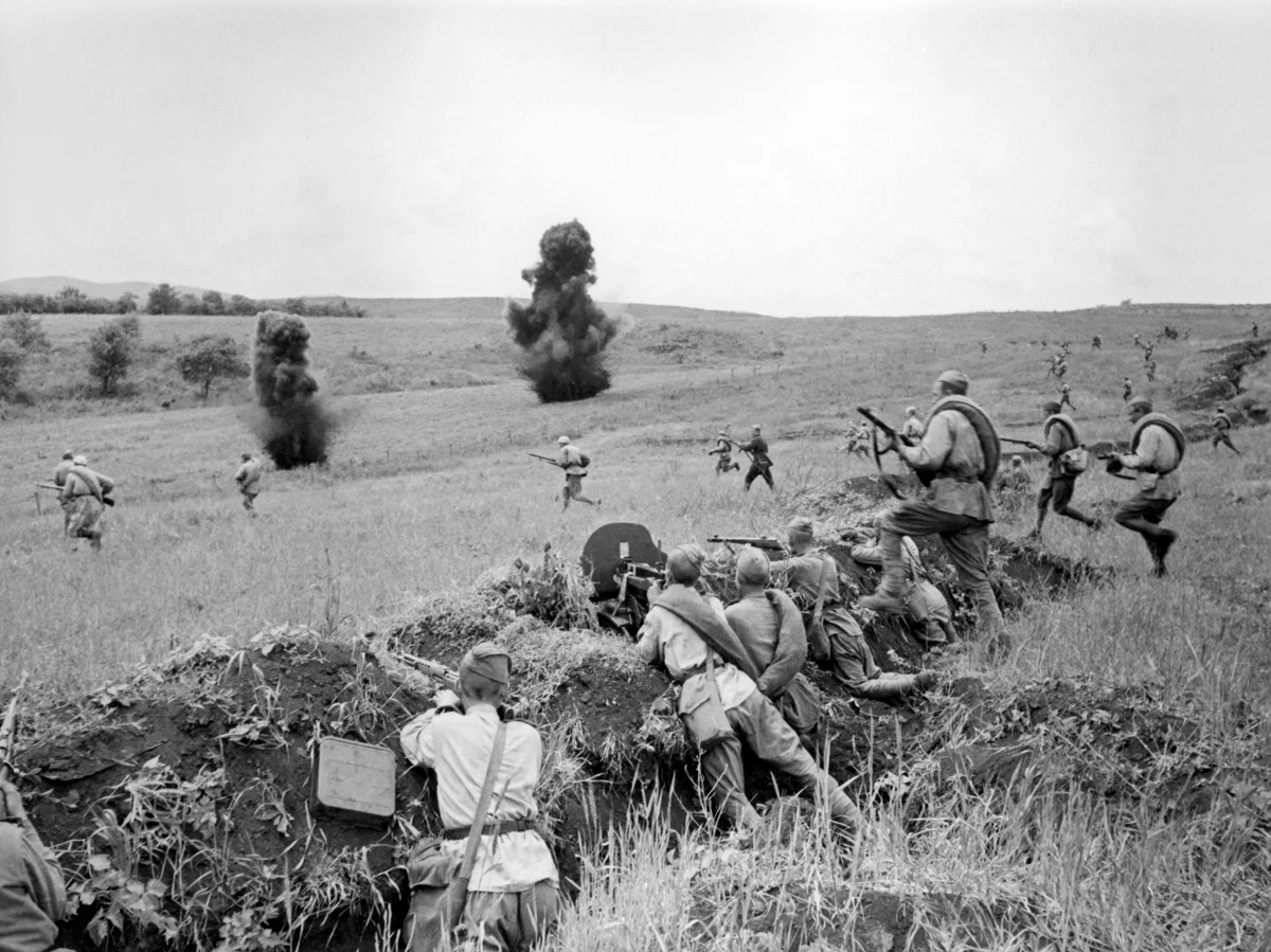 Успели повоевать и с японцами. Мы взяли Мукден и прошли тысячу километров в тылу у них. Прошли через пустыню. И там мы первый раз столкнулись с камикадзе. Там была железная одноколейная дорога. И мы на танках шли по шпалам. На нас кинулся вот этот камикадзе. Но он не попал в наш танк, а в рельсы впереди врезался. Путь разворотило. Пришлось объезжать на танках по пескам. Это очень сложно.