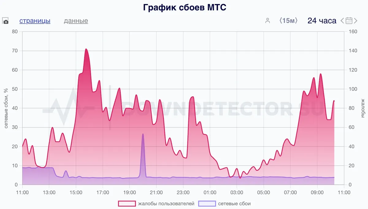 Сервис Downdetector фиксирует неполадки в работе российских мобильных операторов МТС, «Билайн», «Мегафон» и Тele2. Большое количество жалоб поступает из Москвы и области, также сбои фиксируются в других регионах.