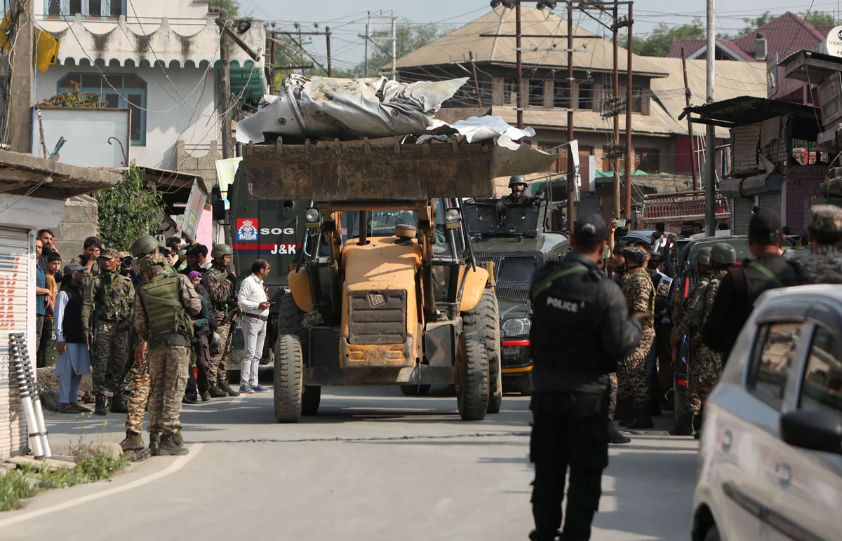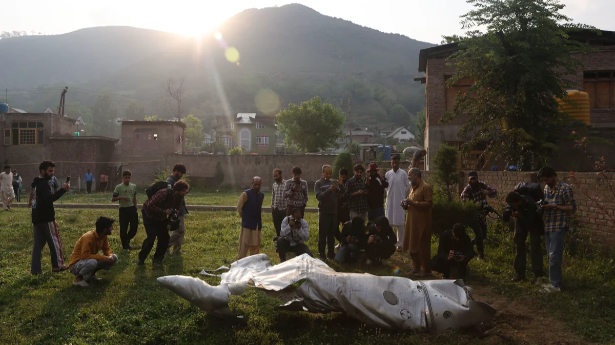 Часть неопознанного летательного аппарата на территории мечети в Пампоре, Индия, 7 мая 2025 года. Фото: Farooq Khan / EPA