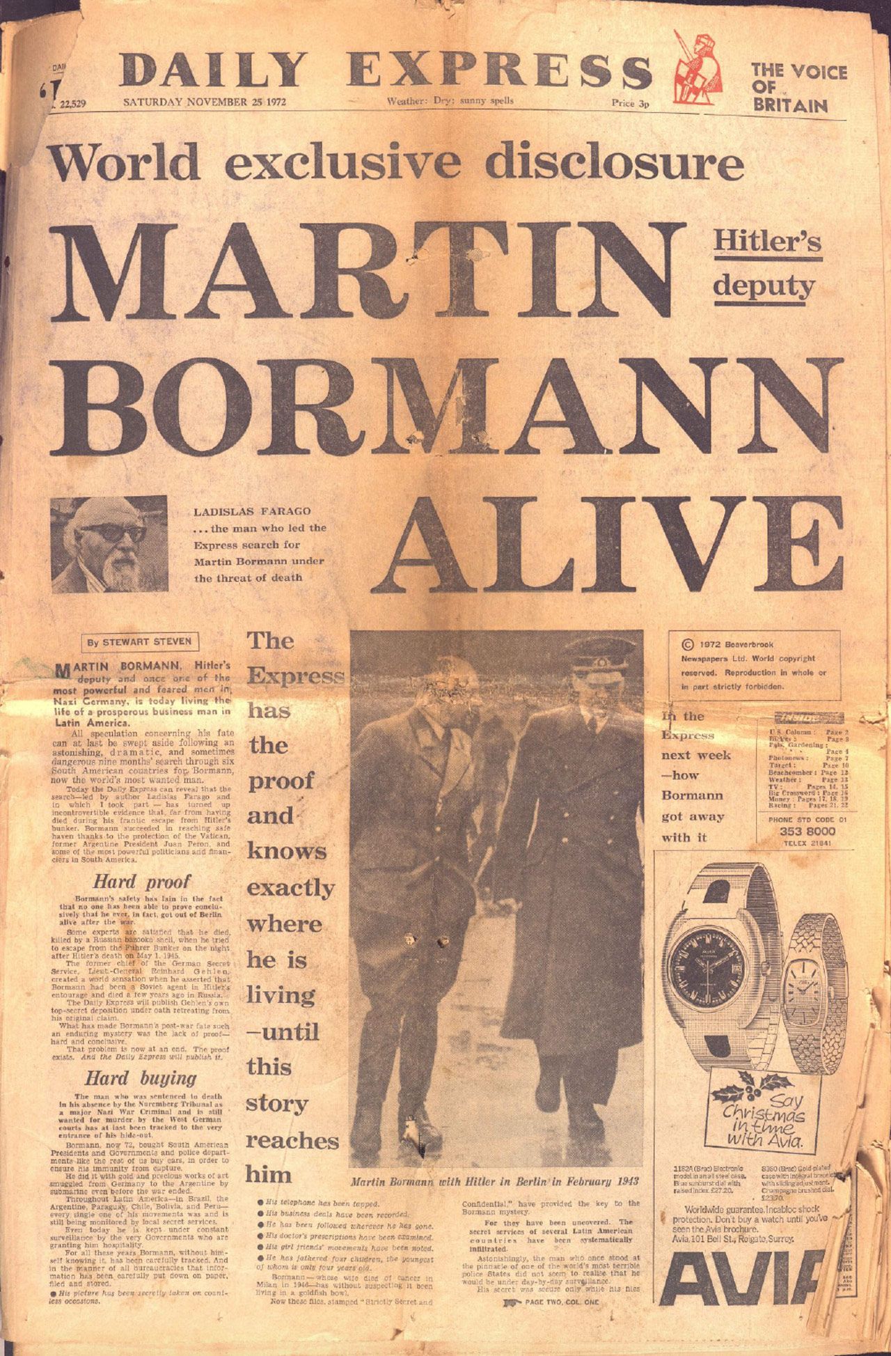 Кроме того, значительная часть опубликованных документов посвящена Мартину Борману, начальнику канцелярии нацистской партии и личному секретарю Адольфа Гитлера. Борман находился в бункере Рейхсканцелярии вместе с Гитлером вплоть до его самоубийства 30 апреля 1945 года. После этого попытался выбраться из Берлина, но попал под обстрел советской артиллерии и погиб (возможно, получил ранение и покончил с собой, убедившись, что спастись от советского плена не удастся). Однако гибель Бормана была подтверждена лишь в 1972 году, когда его останки нашли при строительных работах близ вокзала Лертер, на месте нынешнего берлинского главного вокзала. Нюрнбергский трибунал в 1946 году, не будучи уверенным в судьбе Бормана, заочно приговорил его к смертной казни.