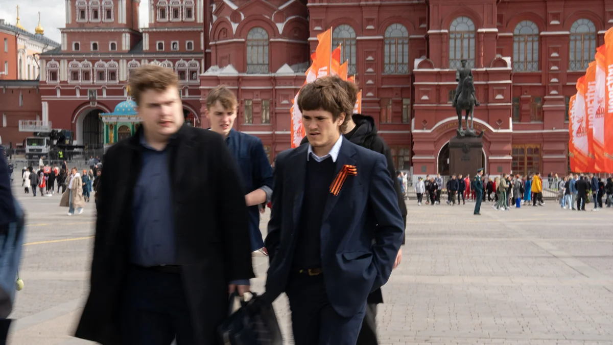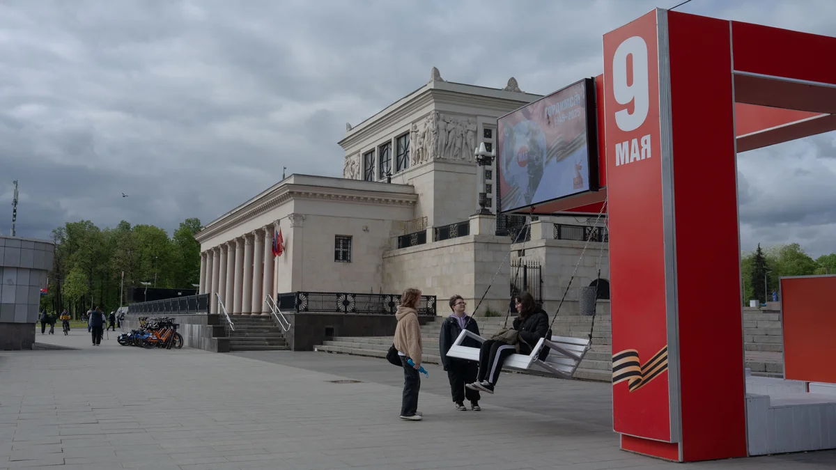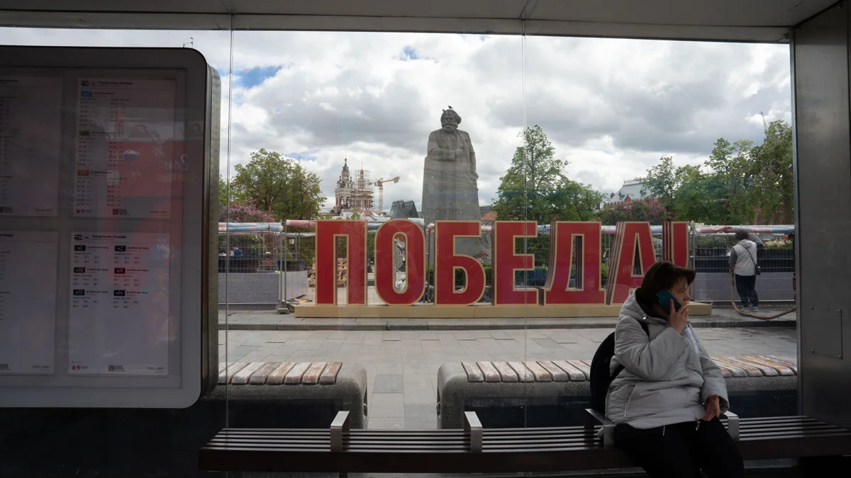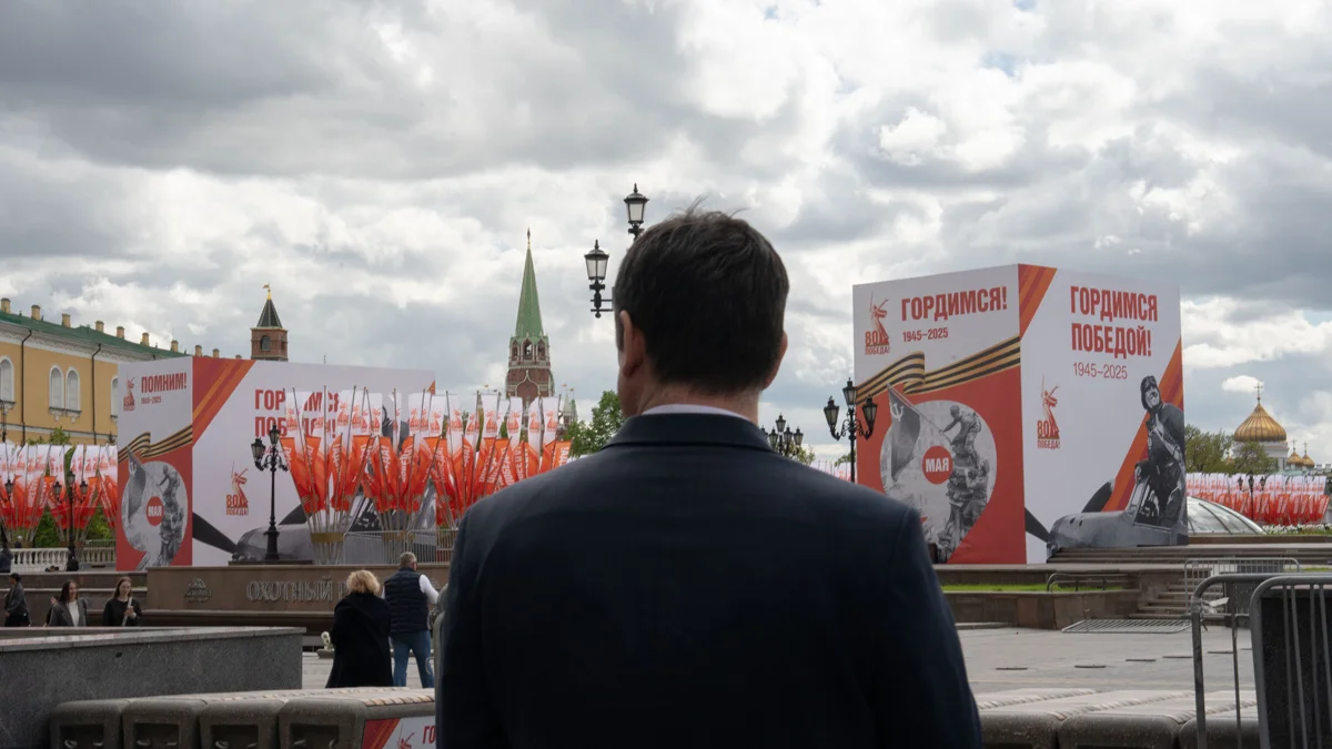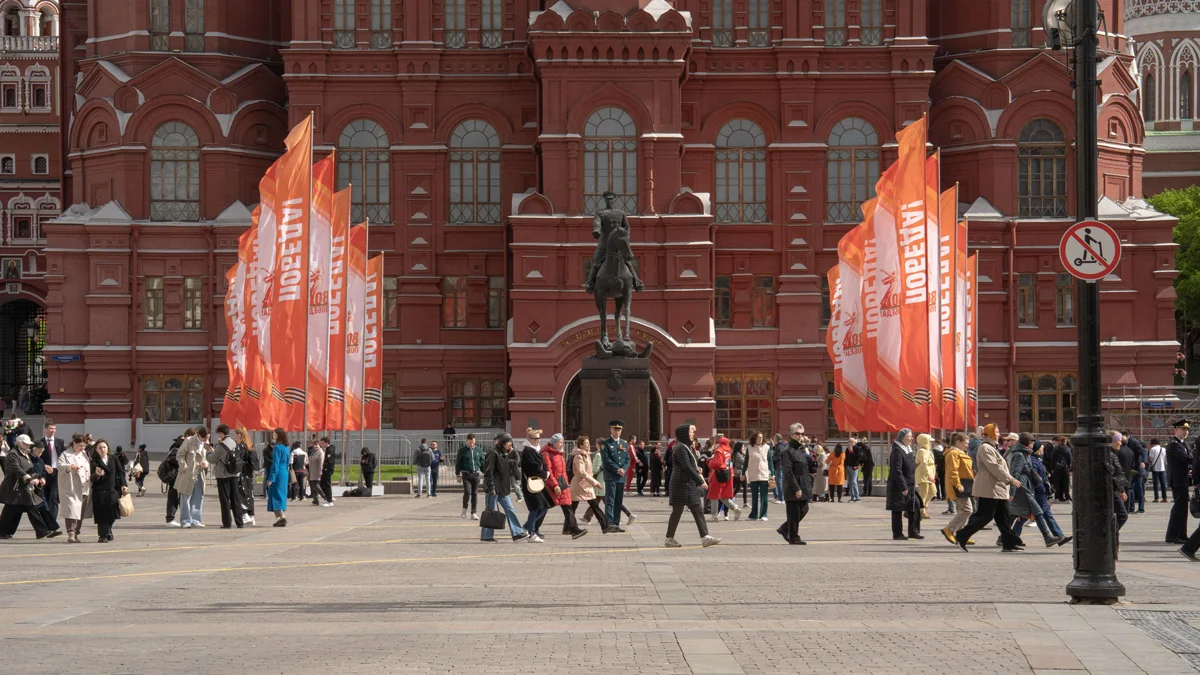 Рабочие устанавливают огромный баннер на заброшенном доме на Ленинградском проспекте. Накануне его частично оштукатурили и выкрасили свежей серой краской.ВТБ Арена на метро «Динамо». Колонны украшены растяжками в цветах георгиевской ленты.Типовой плакат на Ленинградском проспекте. Его можно увидеть в разных по всей Москве и в других городах, — на торцах домов, на остановках, в витринах и в качестве наклеек.Театральная площадь, вид на памятник Карлу Марксу Льва Кербеля.Участников войны в Украине, прибывающих в отпуск и на реабилитацию, чаще всего можно увидеть в метро, аэропортах, и на вокзалах.Толпа перед мемориалом Г. Жукову перед Историческим музеем.Сотрудник службы безопасности патрулирует площадь у Охотного ряда перед очередной репетицией парада с участием пехоты.Триумфальная площадь.Экскурсионная группа у баннера на Охотном ряду.Кадеты и юнармейцы у Александровского сада перед церемонией возложения венков у могилы Неизвестного солдата.Декорированные качели у метро «Динамо». На экране демонстрируется военная хроника и плакаты.Жилой дом на Белорусской, украшенный типовыми плакатами. Так выглядит сейчас практически каждый дом в Москве, — украшены как входы в подъезды, так и витринов магазинов, — «Вкуссвилла», «Магнолии», OZON и других.Некоторые владельцы бизнесов отходят от использования стандартных плакатов, но большинство предпочитает просто брать количеством. Часто один и тот же плакат наклеен в ряд, как афиша.Один из типичных плакатов с «участниками СВО».Памятник Г. Жукову перед Историческим музеем.Баннер на Тверской улице.Плакаты в честь юбилея Победы традиционно соседствуют с агитками для потенциальных контрактников.Афиша военного спектакля на Театральной площади.Площадь перед Большим театром.Плотный ряд знамен перед Александровским садом.Вид на Тверскую улицу через окно автобуса.Ограждения, которые используют для перекрытия улиц перед репетициями парада. Некоторые бизнесы вынуждены были ограничить время работы в дни перед 9 мая, во время репетиций в центр не ходят автобусы, центральные станции метро не работают на выход, не работает связь.