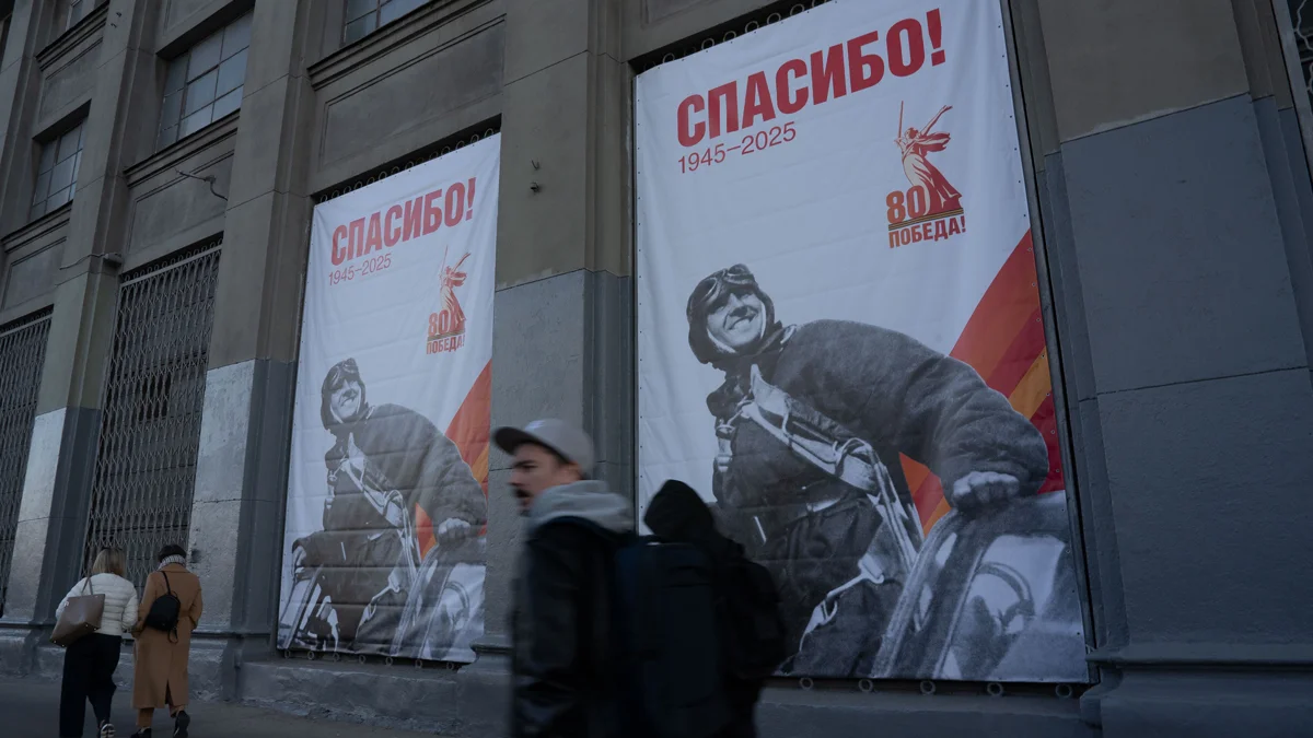 ОТ АВТОРА «Уже несколько лет большой войны я стараюсь каждый день делать фотографии, — в основном на телефон, потому что так легче остаться незамеченным (хотя это в России становится все сложнее, учитывая нарастающую всеобщую паранойю и подозрительность). Большинство фотографий — это размытые, украдкой сделанные снимки «героев СВО» и военной агитации. Все это довольно брутальный контент, к которому у меня выработался определенный иммунитет, но подготовка к 9 мая 2025 года смогла удивить и меня: настолько формально и небрежно к ней подошли. К традиционной государственной гигантомании прибавилось желание выслужиться и, очевидно, обезопасить себя и свой бизнес: город наполнился типовыми и небрежно сделанными военными плакатами, журавлями, гвоздиками и тюльпанами, безжизненными AI-изображениями. В этом порыве подданнического креатива, как мне кажется, потерялось главное — память о войне и ее бесчисленных жертвах. Сейчас эту память заслоняют огромные баннеры с интервалом 1945-2025, — и мы все понимаем, насколько лицемерная эта параллель. Непонятно только, сколько времени еще пройдет, прежде чем что-то изменится».