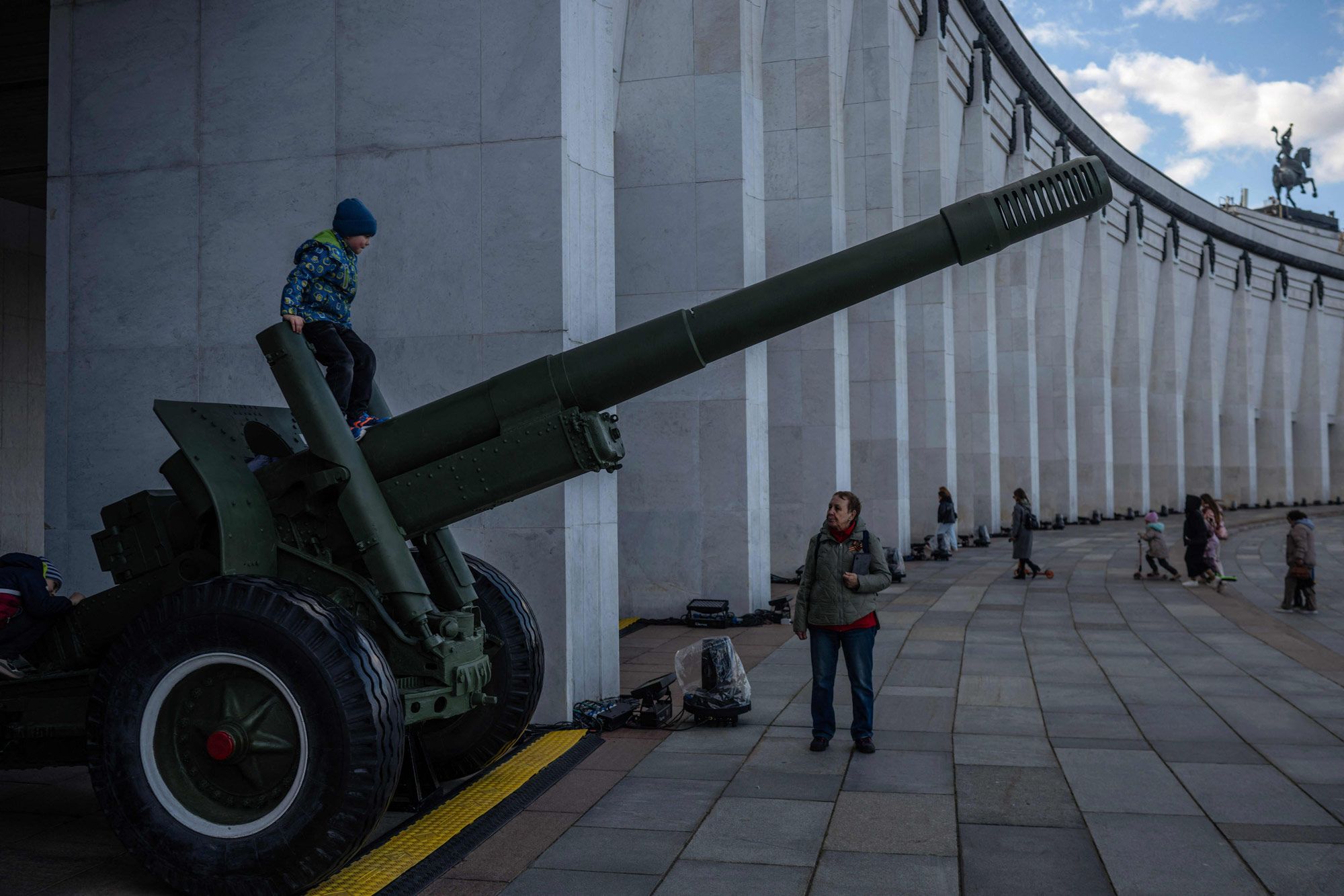 Сотрудник говорит о парке-музее «ГОРА», открытом в мае 2022 года. Его название расшифровывается как «главные оружейные реликвии армии». Это отдельный комплекс неподалеку от музея Победы, под который отведено больше 10 гектаров. Помимо техники там есть интерактивные тематические зоны — например, траншеи с землянками, где можно посмотреть на быт солдат Великой Отечественной войны. Прогулка по этой локации проходит под реалистичные звуки выстрелов и взрывов из динамиков, взрывы слышно даже за пределами парка. Слыша звуки военных действий, некоторые прохожие испуганно крутят головами.