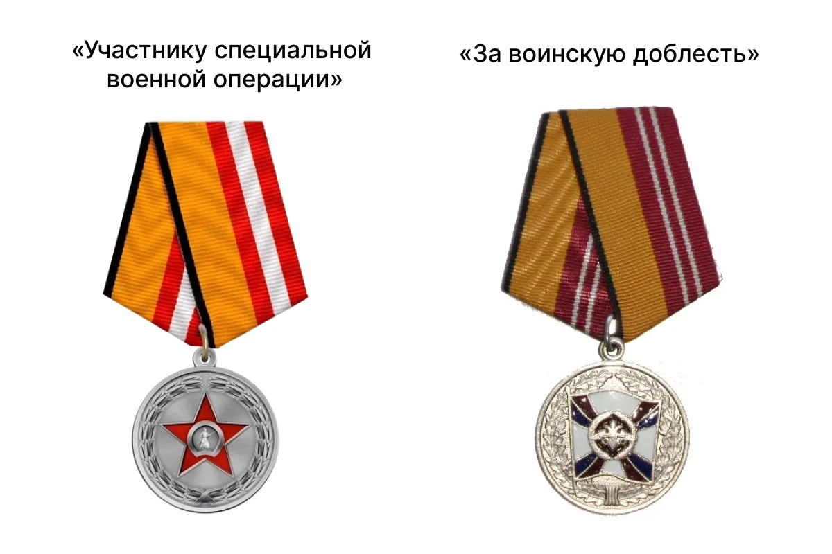«Новая газета Европа» установила: у большинства действующих российских военных на груди были ведомственные награды Минобороны — медали «Участнику СВО» и «За воинскую доблесть». Таковые вручаются многим бойцам, воюющим на передовой. У некоторых также виднелись медали Георгия Жукова и «За отвагу».