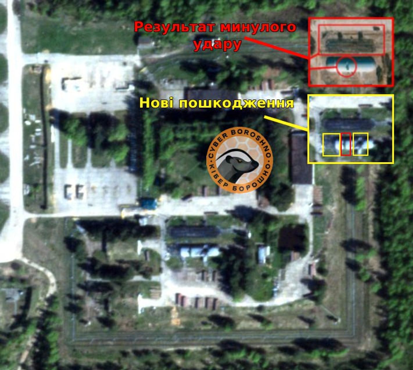 Также в «КіберБорошно» оценили результаты ударов по аэродрому стратегической авиации Шайковка в Калужской области в ночь на 7 мая. Согласно этой информации, полностью уничтожены технические помещения для обслуживания и подготовки ракет Х-22. Также зафиксированы пожары в районе топливной станции и поражение топливных цистерн.