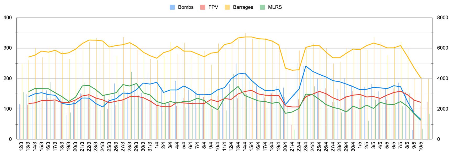 - «Шашлычное перемирие» с 8 по 11 мая — интенсивность штурмовых действий ВС РФ почти не изменилась