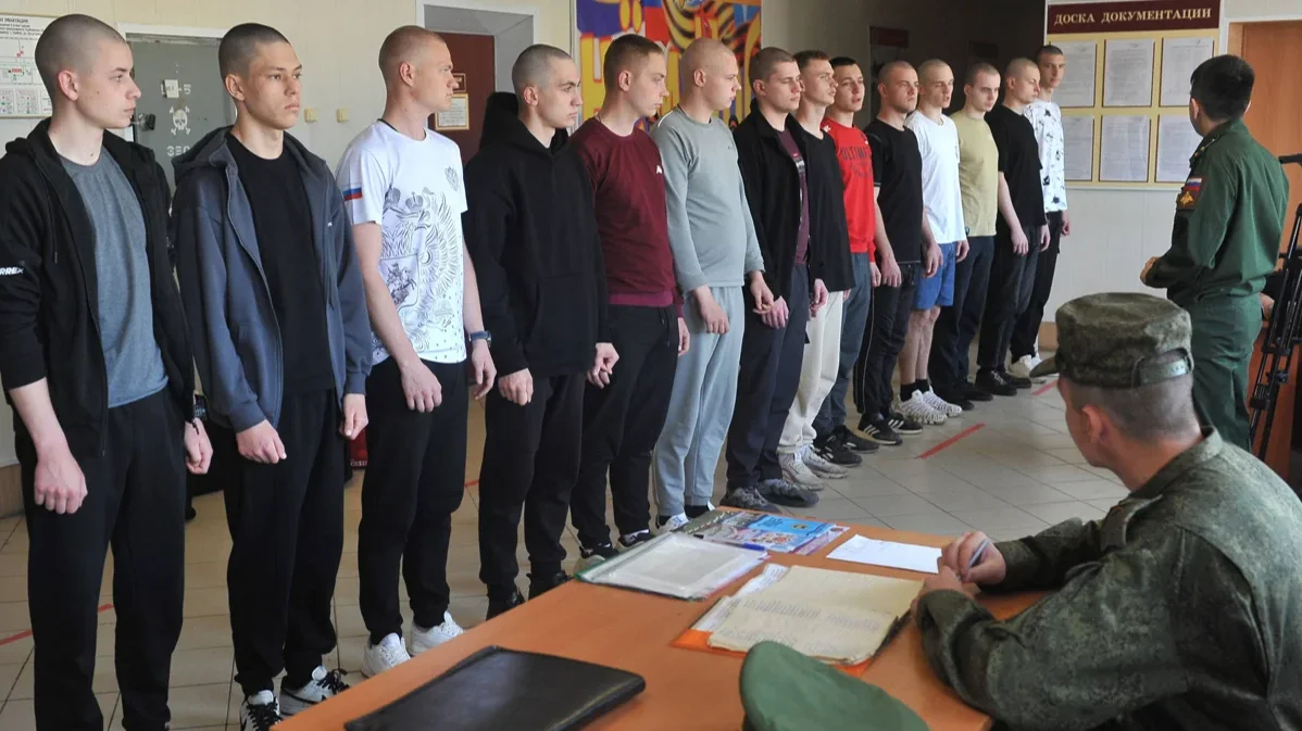 Conscripts at a regional military enlistment office assembly point, Tambov, 24 April 2024. Photo: Alexey Sukhorukov / Sputnik / Imago Images / Scanpix LETA