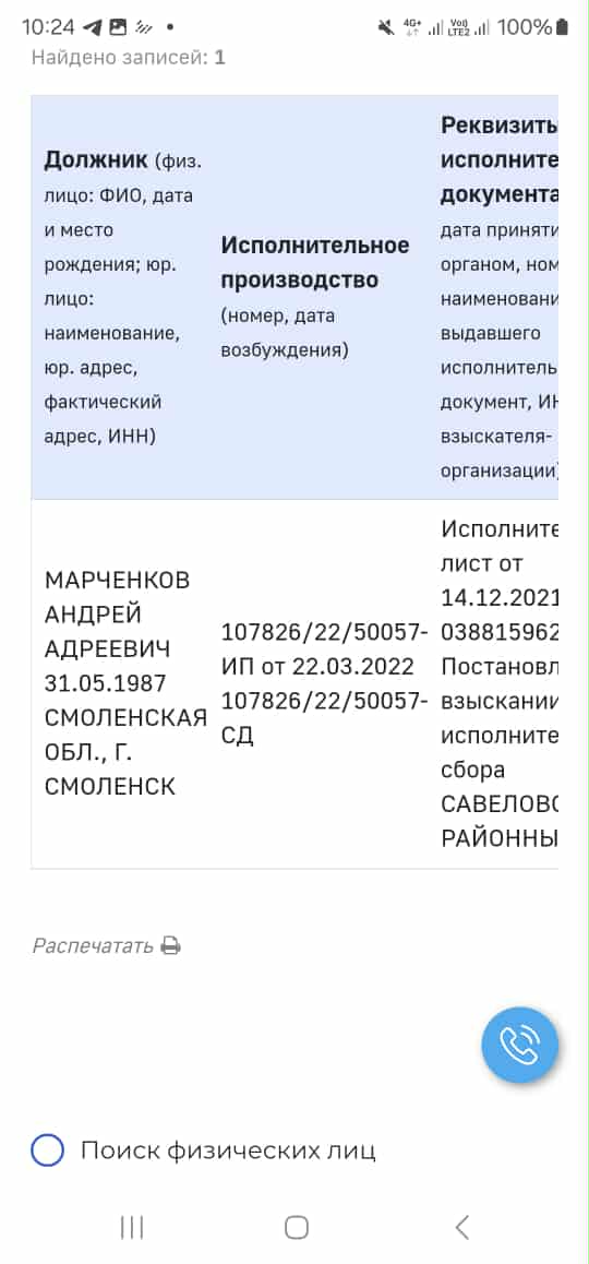 Ирина Сорока, впрочем, утверждает в соцсетях, что ничего ее муж старушкам не должен и вообще в базе ФСПП не значится. Но на самом деле он там есть: просто невнимательный пристав ещё в 2021 году вбил отчество Марченкова как "Адреевич" вместо "Андреевич", однако номера исполнительных производств указаны верно. Бабушкам лейтенант должен около 1 млн рублей, это примерно четвертая часть от стоимости подаренного им жене мерседеса.