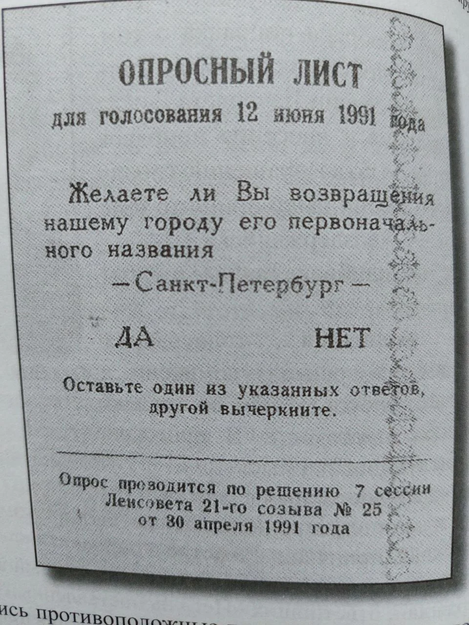 * 30 апреля 1991 года Ленинградский городской совет народных депутатов принял одно из самых важных своих решений: о проведении опроса о возвращении Ленинграду исторического имени Санкт-Петербург.