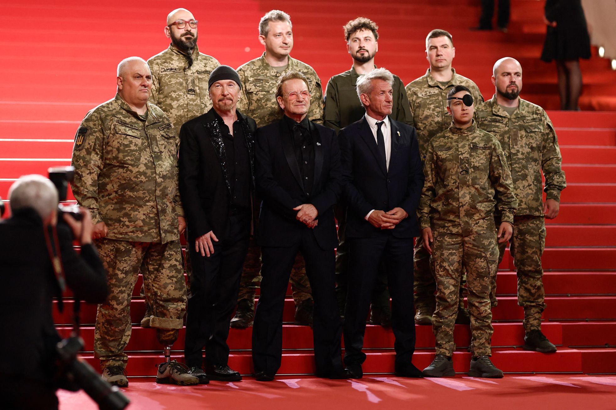 Боно и бойцы ВСУ на красной дорожке в Каннах. Фотография