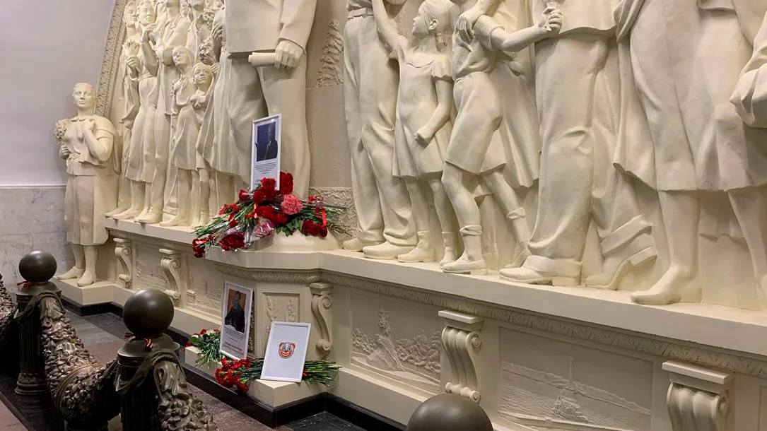 У барельефа со Сталиным в московском метро установили цитаты Путина и Медведева с критикой культа личности советского вождя