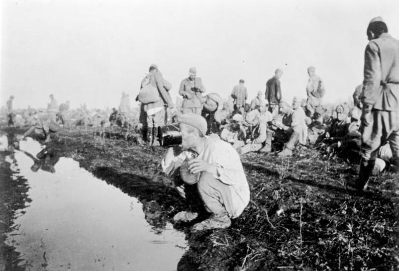 По дороге в лагерь пленных чаще всего ничем не кормили. Люди питались попадавшимися по дороге капустными листьями, корнями, ржаными колосьями с неубранных придорожных полей. Воду пили из дорожных луж. Останавливаться у колодцев или просить напиться и поесть у крестьян воспрещалось. Местные жители с риском для себя передавали пленным продукты. Из Вяземского лагеря в Смоленск, например, в 1941 году из 15 тысяч человек дошли 2 тысячи, остальные погибли от голода и насилия. Практически все мемуары выживших военнопленных описывают свой путь до лагеря как дорогу страданий и голода. Играла свою роль и численность пленных, которых в вермахте не готовы были кормить. Впрочем, часто это не давали делать и местным жителям, которые готовы были спасать умирающих без еды людей.