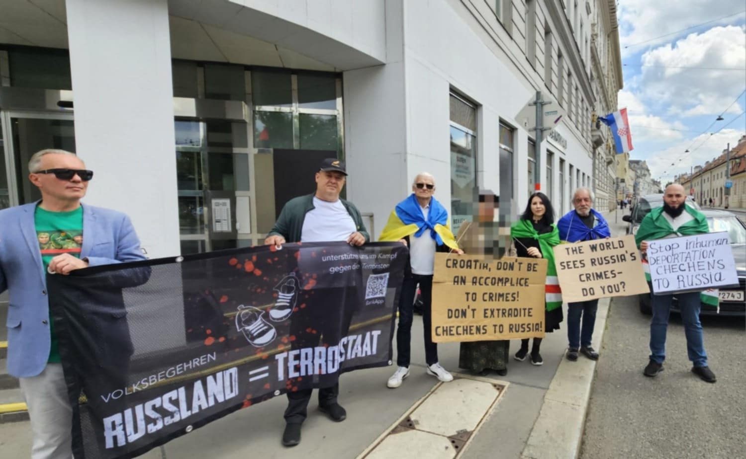 Перед зданием посольства Хорватии в Австрии прошел митинг против высылки в Россию чеченцев, ищущих политическое убежище в балканской стране.