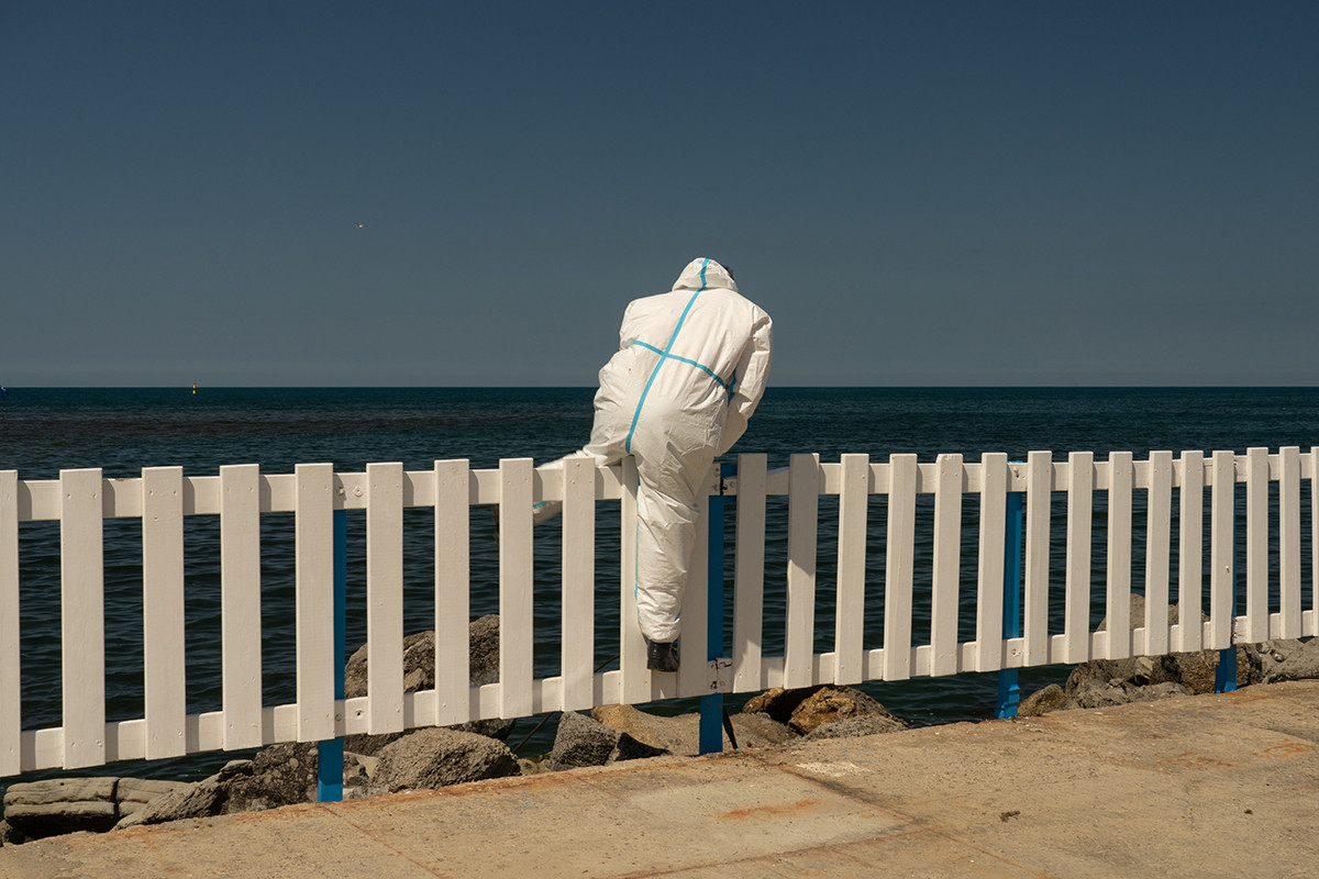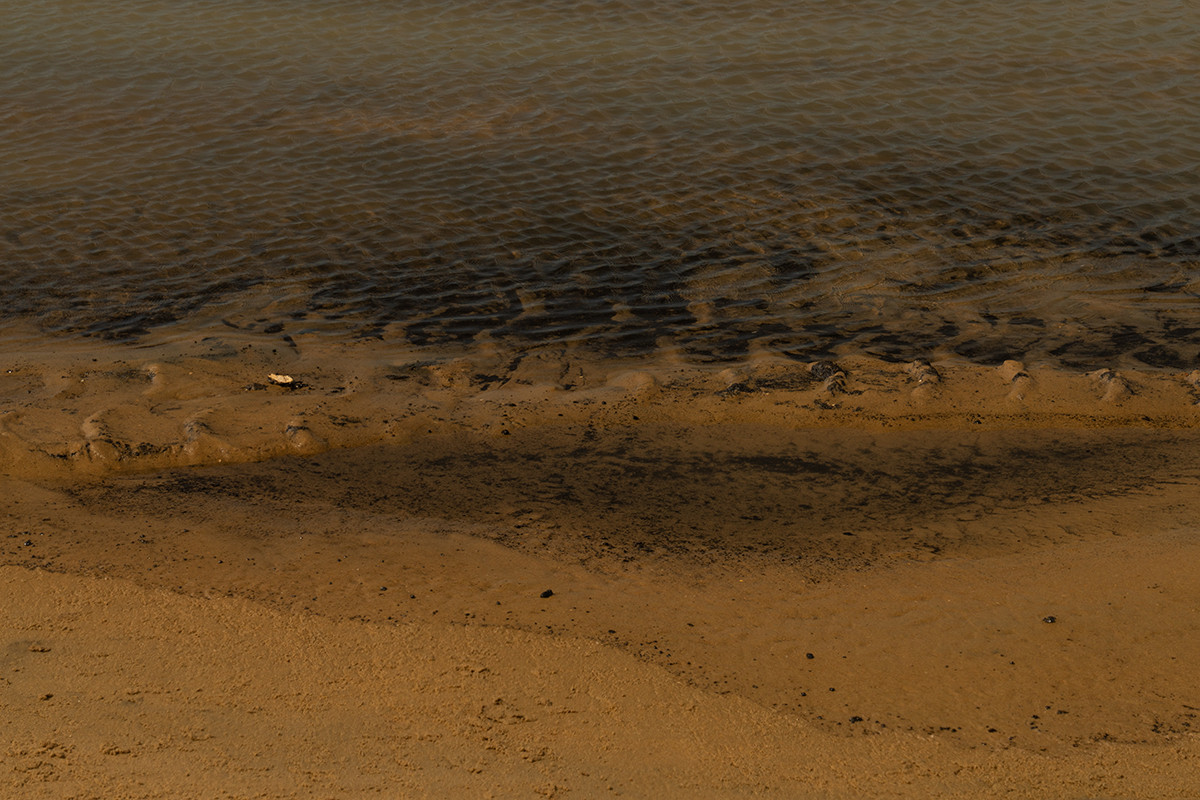 За их спинами семья с двумя детьми уже оттирает мазут от рук и ботинок влажными салфетками. Отец не может сдержать отвращения — он нюхает ладони и морщится, изображая рвотный рефлекс. Видя его реакцию, некоторые отдыхающие замирают между песком и деревянным настилом отеля.