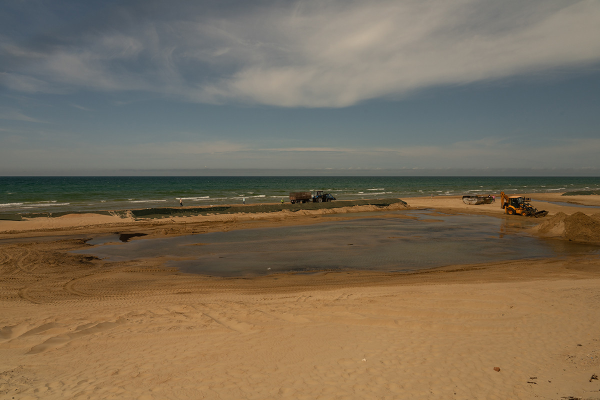 Сегодня по центральным пляжам Анапы ездят сеялки с наклейками «Сезону быть» и машины-рыхлители, которые переворачивают пласты песка после первой очистки, готовя его ко второму проходу сеялок. По сравнению с первым месяцем после разлива, техники на побережье заметно прибавилось. Правда, пока она сосредоточена преимущественно на центральных пляжах Анапы.