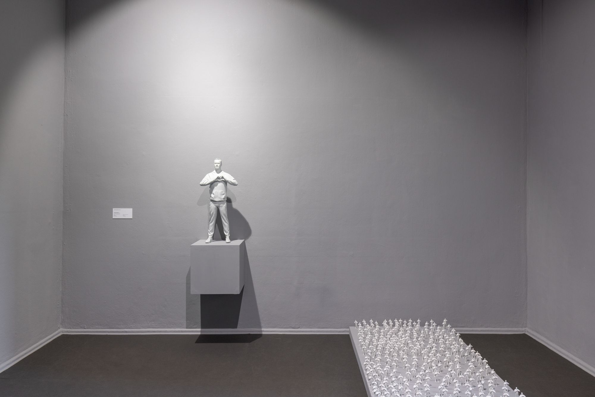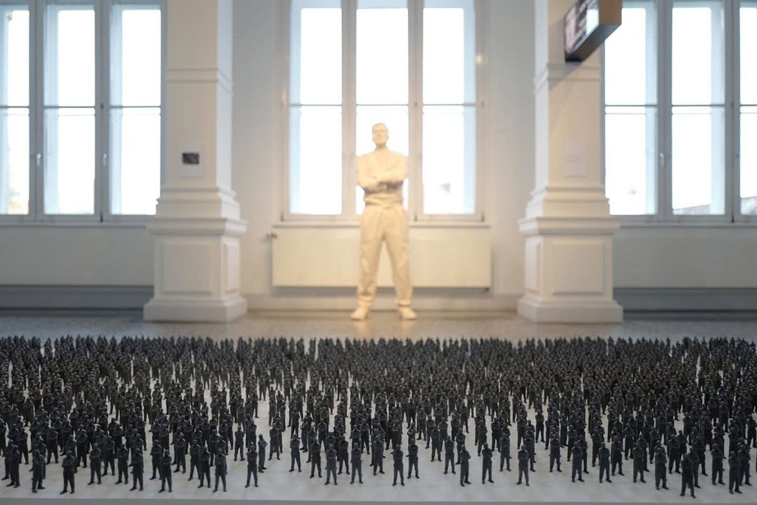 Расставленные на полу шеренгами многочисленные статуэтки Ландмессера — крепко сбитого, нахмурившегося, со скрещенными руками — в Новой Третьяковке раздавали бесплатно. Точнее, при желании вы могли оставить в обмен послание. Создатель этого проекта, испанский художник Фернандо Санчес Кастильо, предлагал посетителям поделиться любым своим соображением — и опустить листок бумаги в урну, как на выборах (автор этого текста написал «Свободу Алексею Навальному»: главный оппонент Владимира Путина уже сидел в колонии).