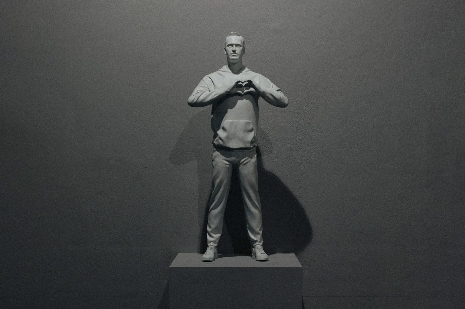 Для Санчеса Кастильо Алексей Навальный не самый привычный герой: работы из серии «Expanded Memorial» обычно напоминают о событиях, которые разворачивались несколько десятилетий назад. Но, как говорит художник, у него нет возможности ждать десятки лет, чтобы сделать инсталляцию в память о Навальном. Скульптура, которую можно увидеть на выставке «No», основана на фотографии, снятой 2 февраля 2021 года, во время исторического заседания суда, который приговорил политика к реальному сроку и отправил его в исправительную колонию. В тот день, глядя из «аквариума» на жену Юлию, Навальный сложил руки в форме сердца. Знаменитый снимок, на основе которого создана фигурка, распространила пресс-служба Мосгорсуда.