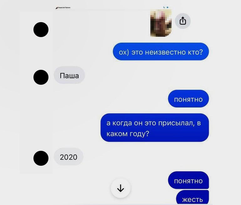 Выяснилось, что такие фотографии Терехин не только хранит у себя на странице, но и рассылает третьим лицам , об этом «Проекту» на условиях анонимности рассказал один из в прошлом петербургских активистов, знакомых с Терехиным. Тот не раз без согласия присылал ему такие снимки ×