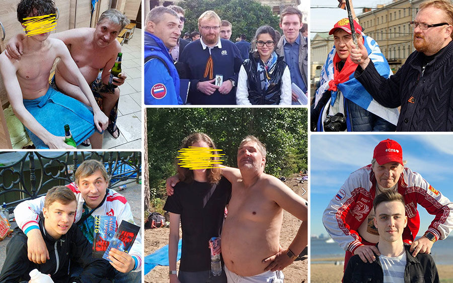 На многих фотографиях Терехин — в окружении очень молодых юношей, возможно, несовершеннолетних. На некоторых снимках с ними еще и депутат Виталий Милонов.