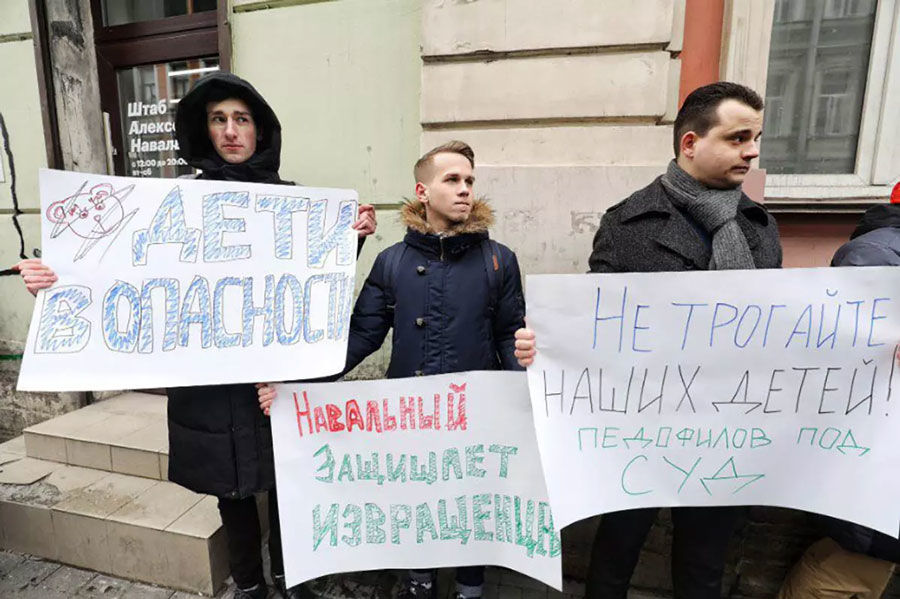 В Петербурге началась настоящая кампания против местного отделения штаба Алексея Навального. Рядом со штабом прошел пикет под лозунгом «Навальный защищает извращенцев».