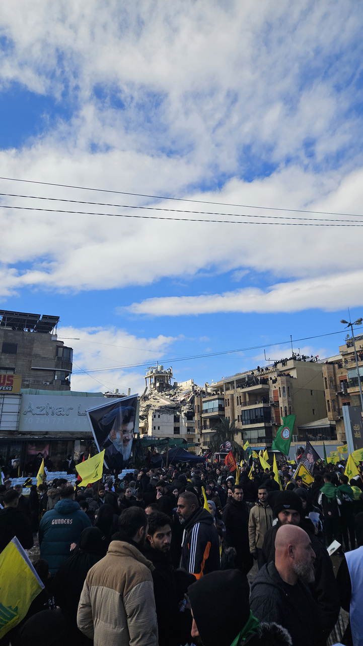 С раннего утра сотни тысяч людей с флагами и портретами Насраллы и ад-Дина вышли на улицы и направились в сторону стадиона. Уже около девяти часов утра к нему было не пробиться.