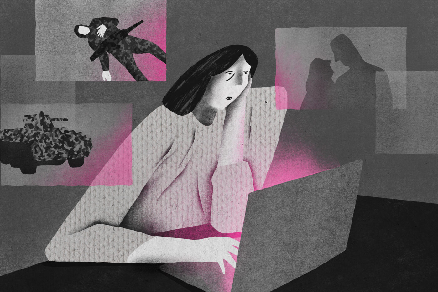 «Сколько я ни читала статей, легче не становится. Вечером, когда детей уложишь спать, такая тоска. Особенно, если слышу Шамана, у меня истерика, реву в подушку», — рассказывает она.