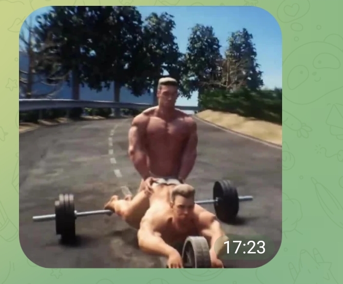 Активист рассказал «Медиазоне», что анимированный стикер с двумя бодибилдерами, которые занимаются сексом на спортивном инвентаре, он скинул в открытом чате уральских либертарианцев несколько месяцев назад.
