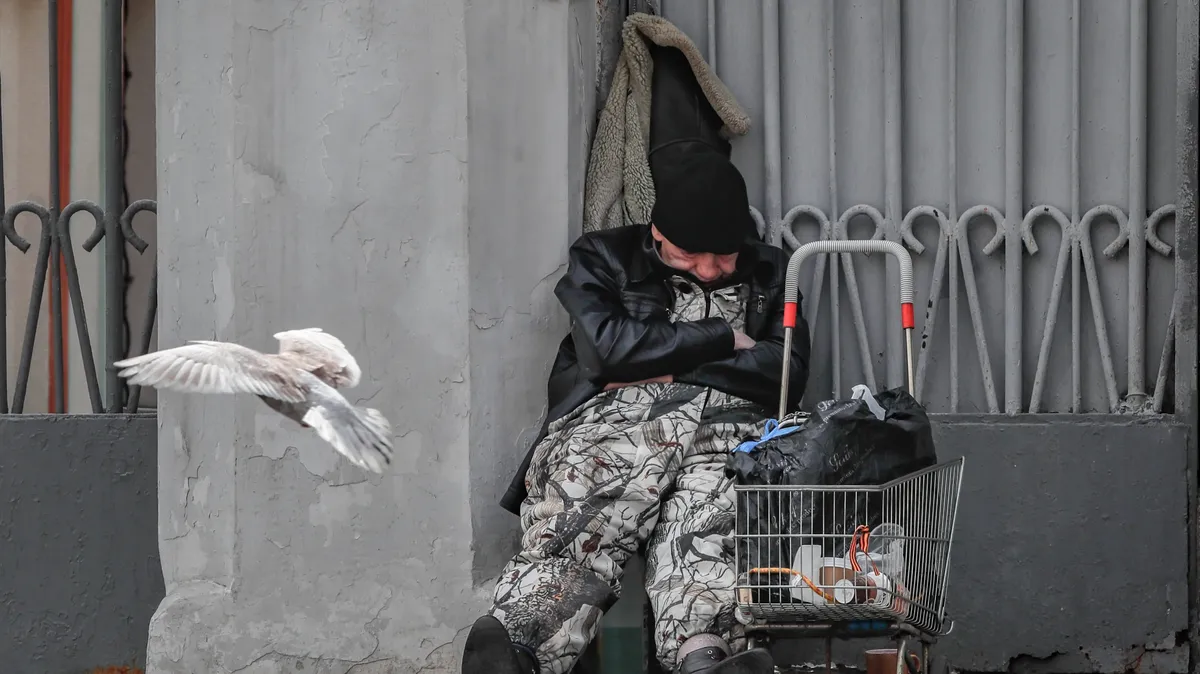 A homeless man sleeps in the centre of Moscow, Russia, 6 May 2022. EPA-EFE/YURI KOCHETKOV