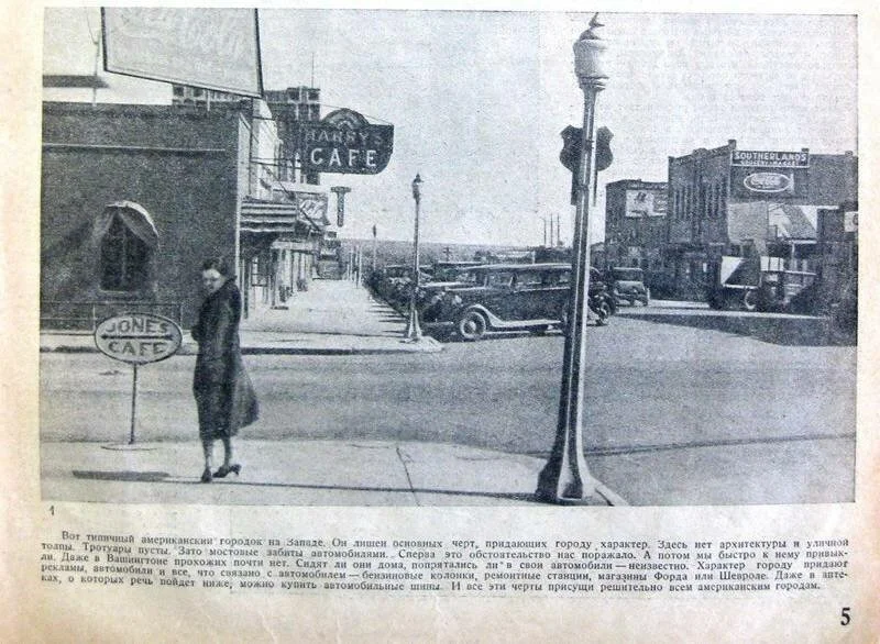 Эту тему подробно разворачивает любимый травелог российских читателей — «Одноэтажная Америка». Ильф и Петров в ней пришли к неприятному выводу. Большую страну населяет маленький народ — меркантильный, мещанский, ограниченный, не достойный американской технической мощи. Зато уж она стала объектом преклонения.