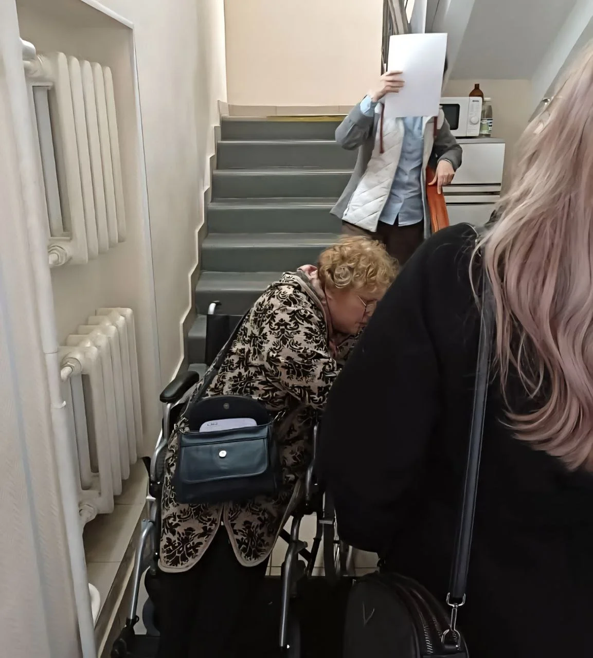 В судебном участке началась суматоха, выбежали все: сотрудники и посетители. Попросили подождать — вызывали специалиста. Пока ждали, одна из сотрудниц суда ничего нового не смогла придумать и тоже предложила, чтобы Осипову занесли на коляске. Она снова ответила отказом.