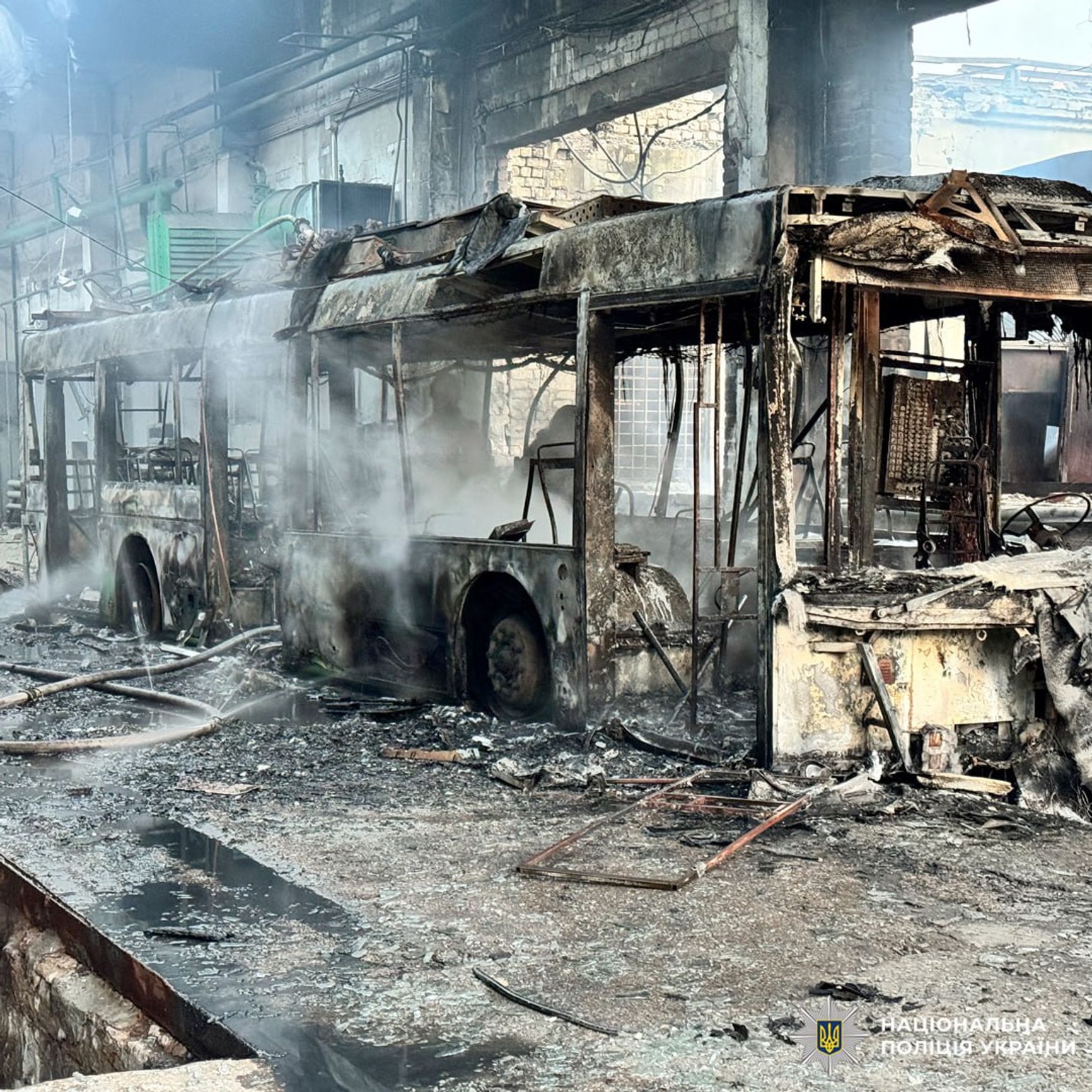 Последствия налета на троллейбусное депо в Харькове