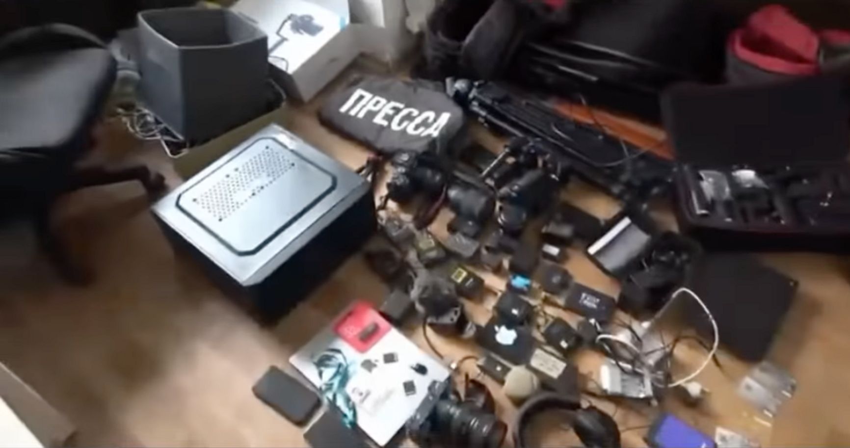 Государственный комитет национальной безопасности (ГКНБ) опубликовал ролик в Instagram, в котором помимо «извинений» показан обыск в редакции, объективы, камеры и телефоны. Все это разложено рядами и показано будто оружие и взрывчатка в роликах силовиков про поимку террористов. Оператор силовиков драматично увеличивает кадр со словом «Пресса» на сумке или жилете, звучит тревожная музыка.