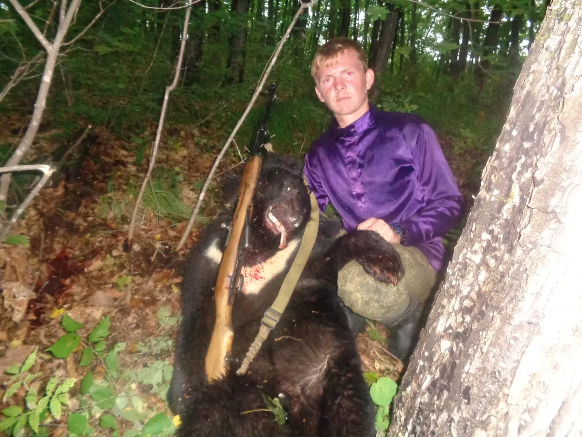 «Кидай быстрее, к старшим загрузим!» — командует один из ребят. И через три минуты мертвого мишку берут за ухо и скидывают с косогора. Чтобы туша бодрее катилась, пинают ногой. А внизу медведя с окровавленным треугольником на груди уже встречают «старшие» на белом джипе.
