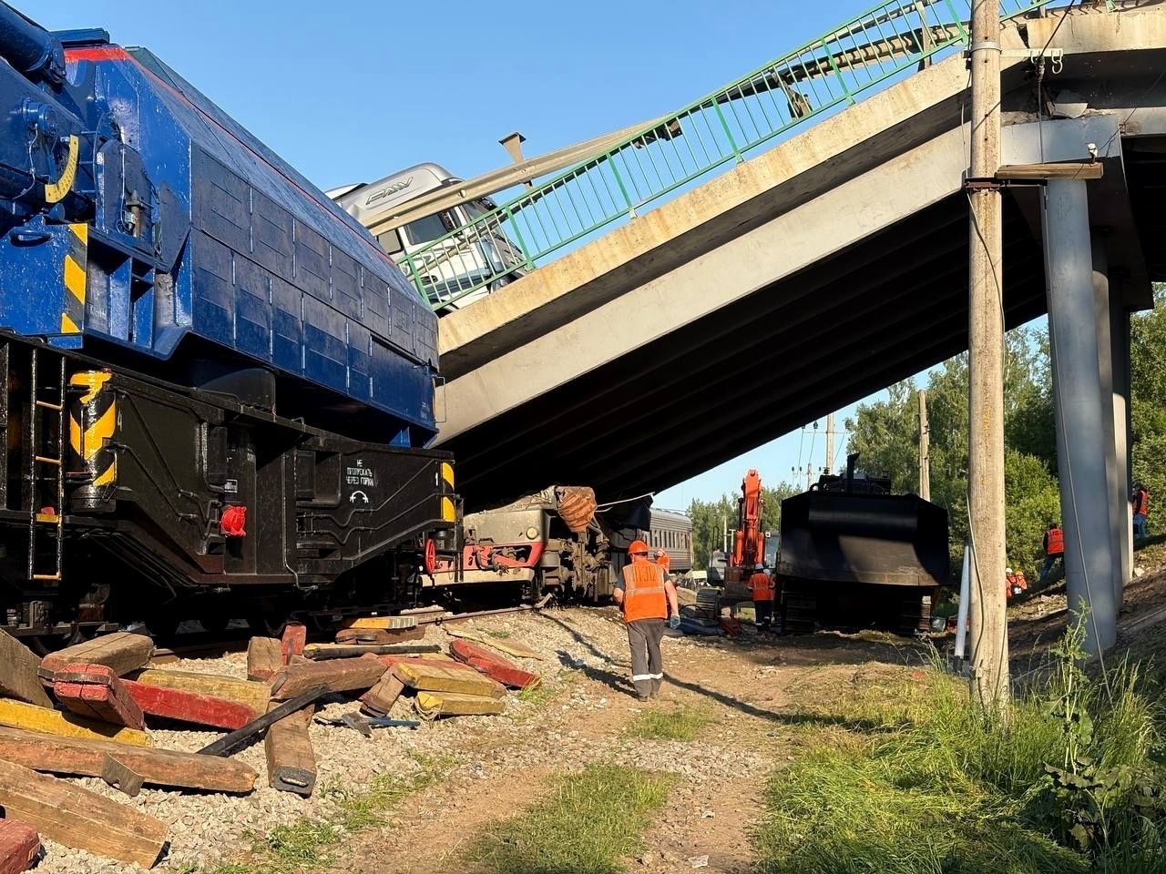 В Брянской области на пассажирский поезд обрушился мост. Погибли семь человек. Власти заявляют о подрыве