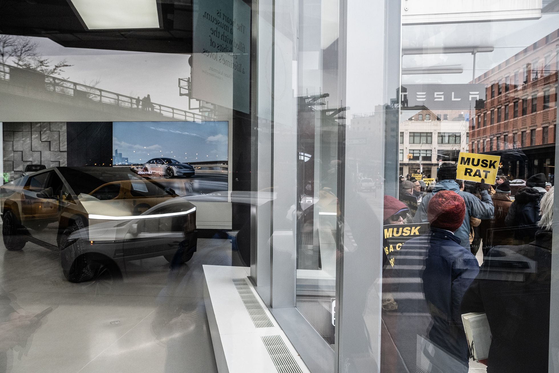 Angela Weiss / AFP / Scanpix / LETA После инаугурации Дональда Трампа 20 января в Вашингтоне основатель SpaceX и Tesla Илон Маск выступил с короткой речью. В конце выступления предприниматель приложил правую руку к груди и резким жестом выбросил ее вверх. Затем, повернувшись к другой части аудитории, повторил этот жест под аплодисменты зрителей. Разразился скандал: многие посчитали, что жест Маска до степени смешения напоминал нацистское приветствие. Сам Маск толком не отреагировал на критикуSean Gallup / Getty Images Илон Маск выступает в прямом эфире по видеосвязи во время митинга в Галле (Германия) по случаю начала предвыборной кампании крайне правой политической партии «Альтернатива для Германии» (АдГ). 25 января 2025 года. В начале мая Федеральное ведомство по охране конституции ФРГ классифицировало партию «Альтернатива для Германии» (АдГ) как «убежденную правоэкстремистскую организацию». Однако спустя несколько дней ведомство приостановило классификацию партии до решения суда, поскольку АдГ оспорила статусAndrew Harnik / Getty Images Президент США Дональд Трамп вместе с генеральным директором Tesla и SpaceX Илоном Маском и его сыном Иксом (X Æ A-12) Маском во время подписания указа в Овальном кабинете. Вашингтон, 11 февраля 2025 года. Там же Маск впервые после вступления Трампа в должность ответил на вопросы журналистов. Он отверг обвинения в попытке захватить власть и ответил на претензии к DOGE. Внимание журналистов привлек и сын Маска, который во время брифинга играл с ручками на столе президента, ковырял в носу, строил гримасы, копировал жесты отца и сидел у него на плечахJim Watson / AFP / Scanpix / LETA Глава Департамента эффективности государственного управления Илон Маск выступает на первом заседании кабинета министров в футболке с надписью «Техническая поддержка». 26 февраля 2025 годаJose Luis Magana / AP / Scanpix / LETA Илон Маск демонстрирует журналистам футболку с надписью «DOGE» на Южной лужайке Белого дома в Вашингтоне. 9 марта 2025 годаStephanie Keith / Bloomberg / Getty Images Протестующие митингуют против действий Илона Маска в администрации Трампа у выставочного зала Tesla в Нью-Йорке. 15 февраля 2025 годаDavid Ryder / Getty Images Активисты в Сиэттле, штат Вашингтон, 12 апреля провели акцию. Они предлагали владельцам автомобилей Tesla, пожалевшим о поддержке компании, бесплатно убрать логотип и заменить его другимDavid Ryder / Getty Images Omer Messinger / Getty Images Автосалон Tesla в Берлине после акции активистов из «Последнего поколения». 31 марта 2025 годаJose Luis Magana / AP / Scanpix / LETA Президент Дональд Трамп, Илон Маск и его сын Икс в вертолете на Южной лужайке Белого дома в Вашингтоне. 13 апреля 2025 годаJose Luis Magana / AP / Scanpix / LETA Илон Маск и президент Аргентины Хавьер Милей на Конференции консервативного политического действия (CPAC) в Оксон-Хилле, Мэрилэнд, 20 февраля 2025 года. После того как Маск появился на сцене, Милей преподнес ему подарок — красную бензопилу с гравировкой «Viva la libertad, carajo» («Да здравствует свобода, черт возьми»). «Это бензопила для бюрократии», — сказал Милей. Ранее бензопила стала символом проводимых Милеем шоковых экономических реформ в АргентинеAndrew Harnik / Getty Images Президент США Дональд Трамп, старший советник Белого дома, генеральный директор Tesla и SpaceX Илон Маск и его сын Икс на Южной лужайке Белого дома 11 марта 2025 года. Трамп, стоя рядом с автомобилями Tesla Model Y, Cyber Truck и Model S, выступил против бойкота компаний Маска и пообещал купить автомобиль Tesla в кач