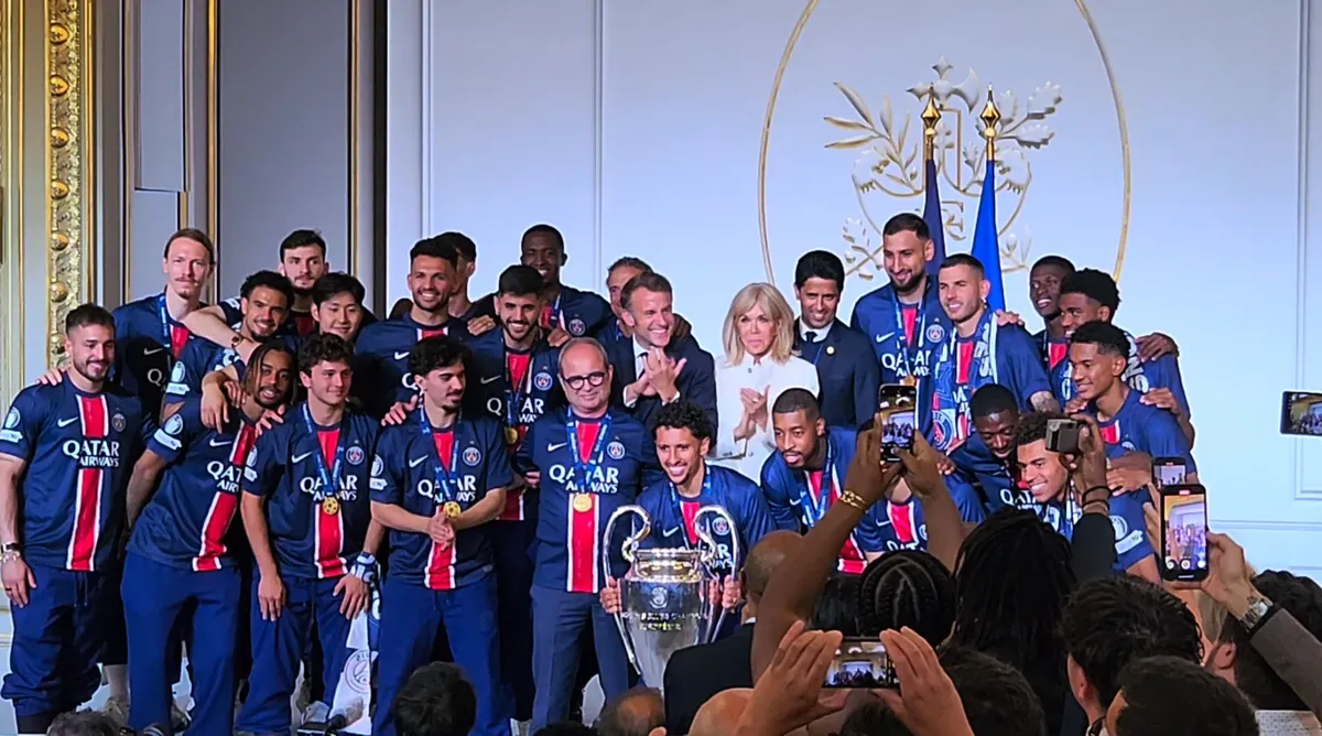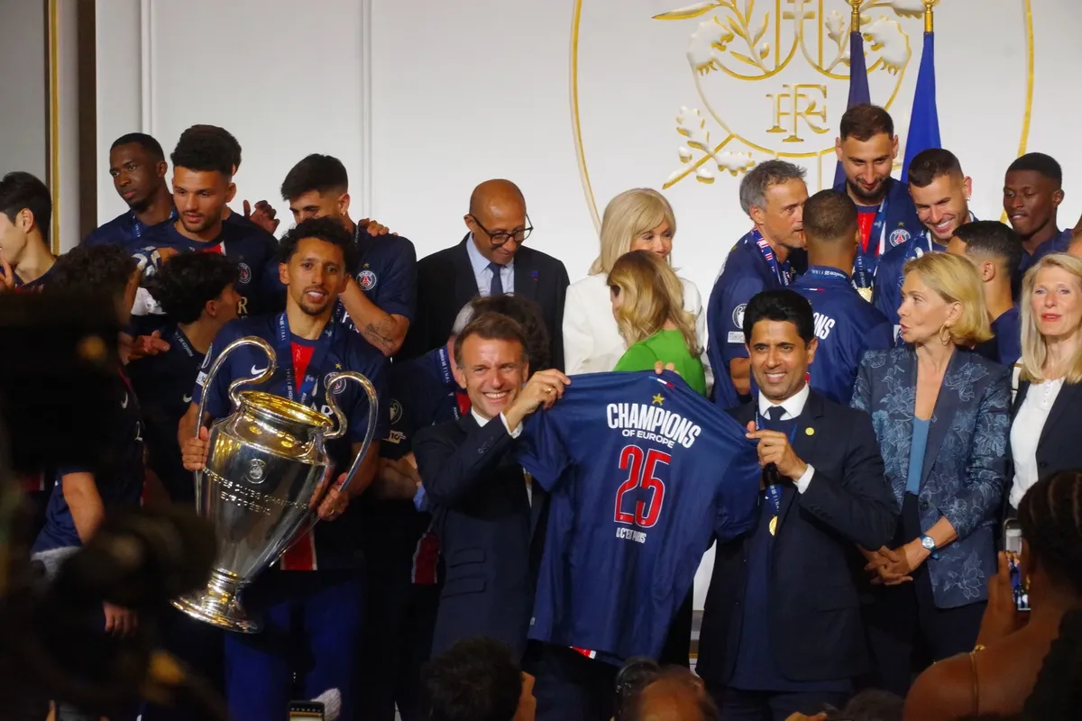 Вечером в воскресенье в Елисейском дворце президент Макрон принял команду «Пари—Сен-Жермен», которая накануне, впервые в своей истории, выиграла Лигу чемпионов.