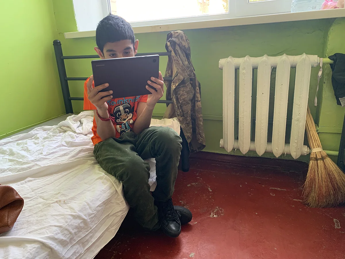 Зарина не выпускает из рук смартфон — волонтеры подарили. Она единственная, кто виделась с мамой после эвакуации, и вообще взрослая, почти невеста. Назар «залип» в планшете с играми. Камила, его погодка, довольно улыбается, когда хвалю ее роскошные волнистые волосы до пояса, и хитро поглядывает, когда перехожу к менее интересным вещам.
