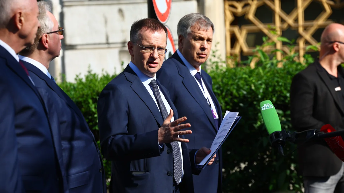 Владимир Мединский делает заявление для прессы после второй встречи российской и украинской делегаций на переговорах в Стамбуле, Турция, 2 июня 2025 года. Фото: Tolga Bozoglu / EPA