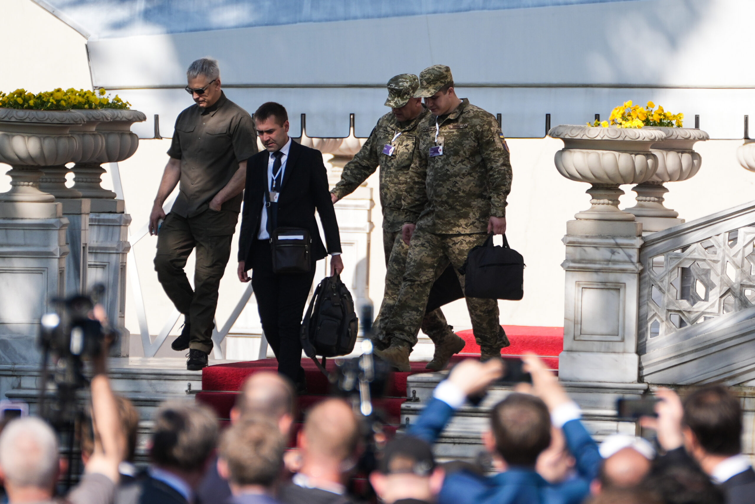 Фото: Украинская делегация после переговоров покидает дворец Чыраган в Стамбуле. Hakan Akgun / Anadolu via Reuters