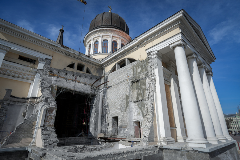 Вид на разрушенный Спасо-Преображенский собор в Одессe