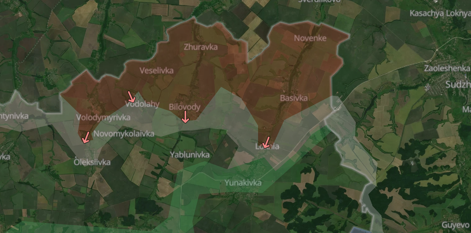 В мае - начале июня российский плацдарм в Сумской области расширился до 30 километров и углубился до 6. Согласно анализу OSINT-проекта DeepState, под полным контролем российской армии сейчас находится девять приграничных населённых пунктов. ВС РФ стремятся пройти Локню и выйти на Юнаковку - главный центр снабжения украинской группировки во время Курской операции - а также продвинуться западнее, атакуя сразу в нескольких направлениях.