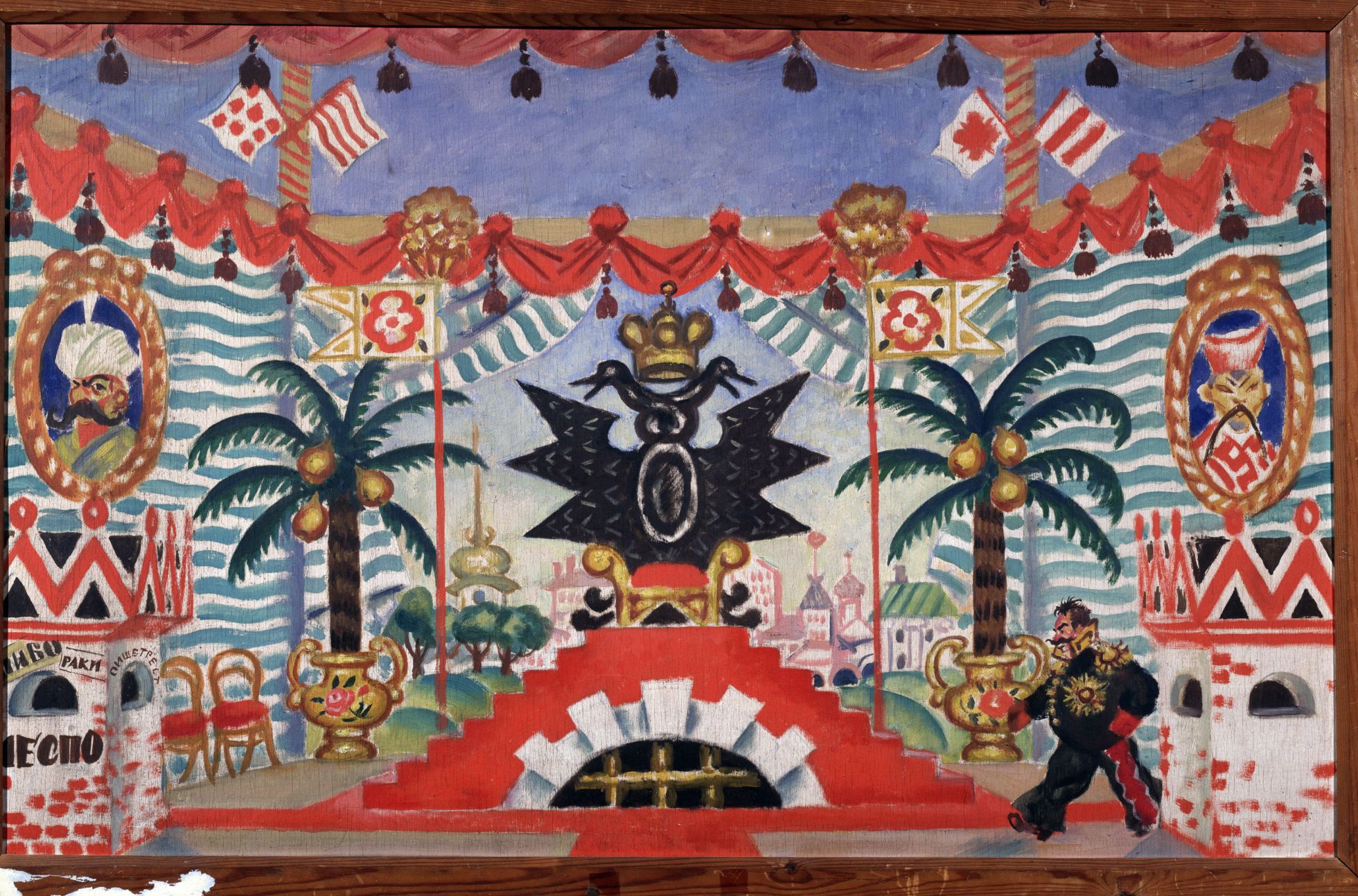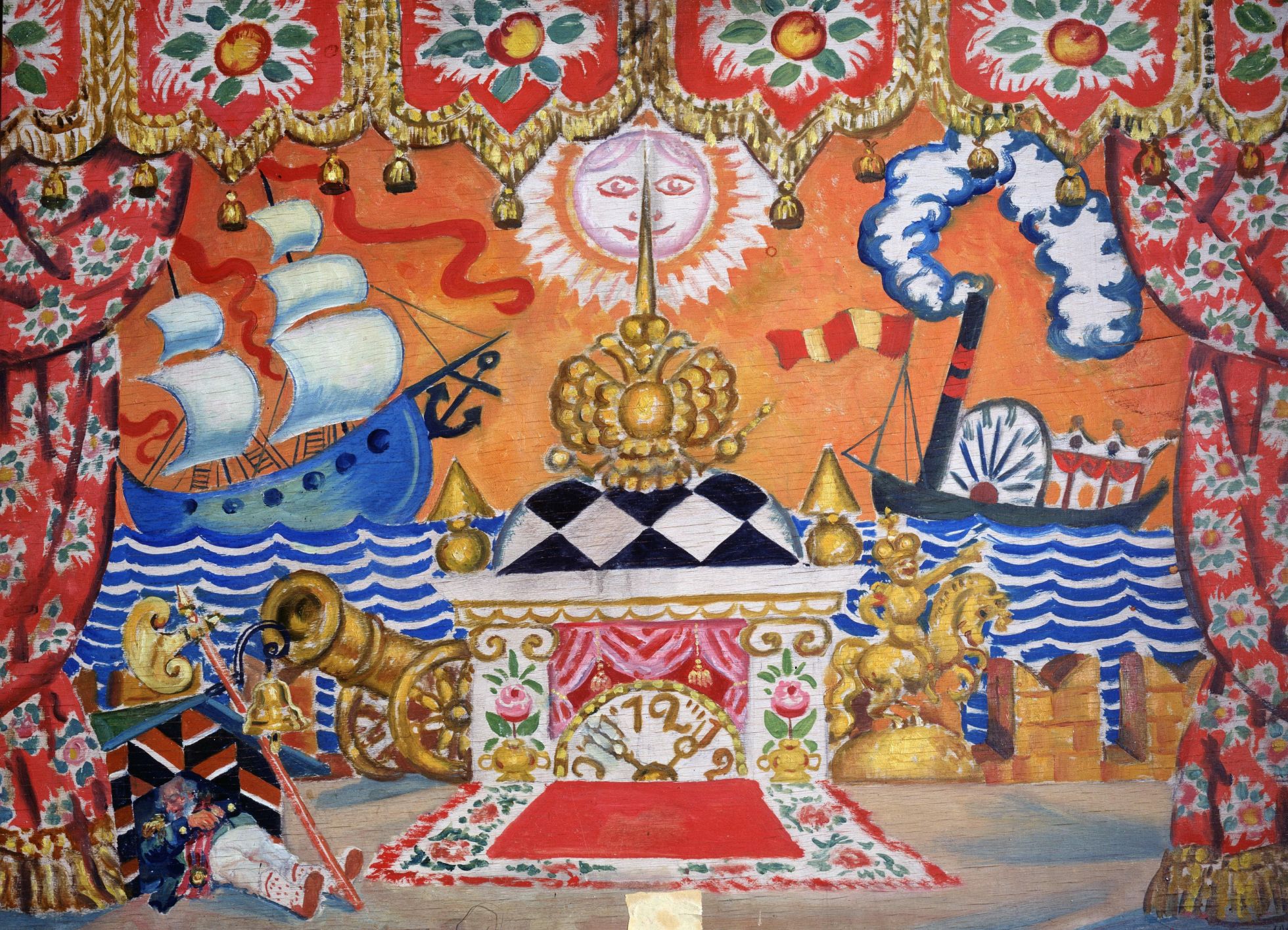 Это пик театральной карьеры художника: с инсценировкой Замятина, лубочной царской Россией и генералами, из которых сыпался песок