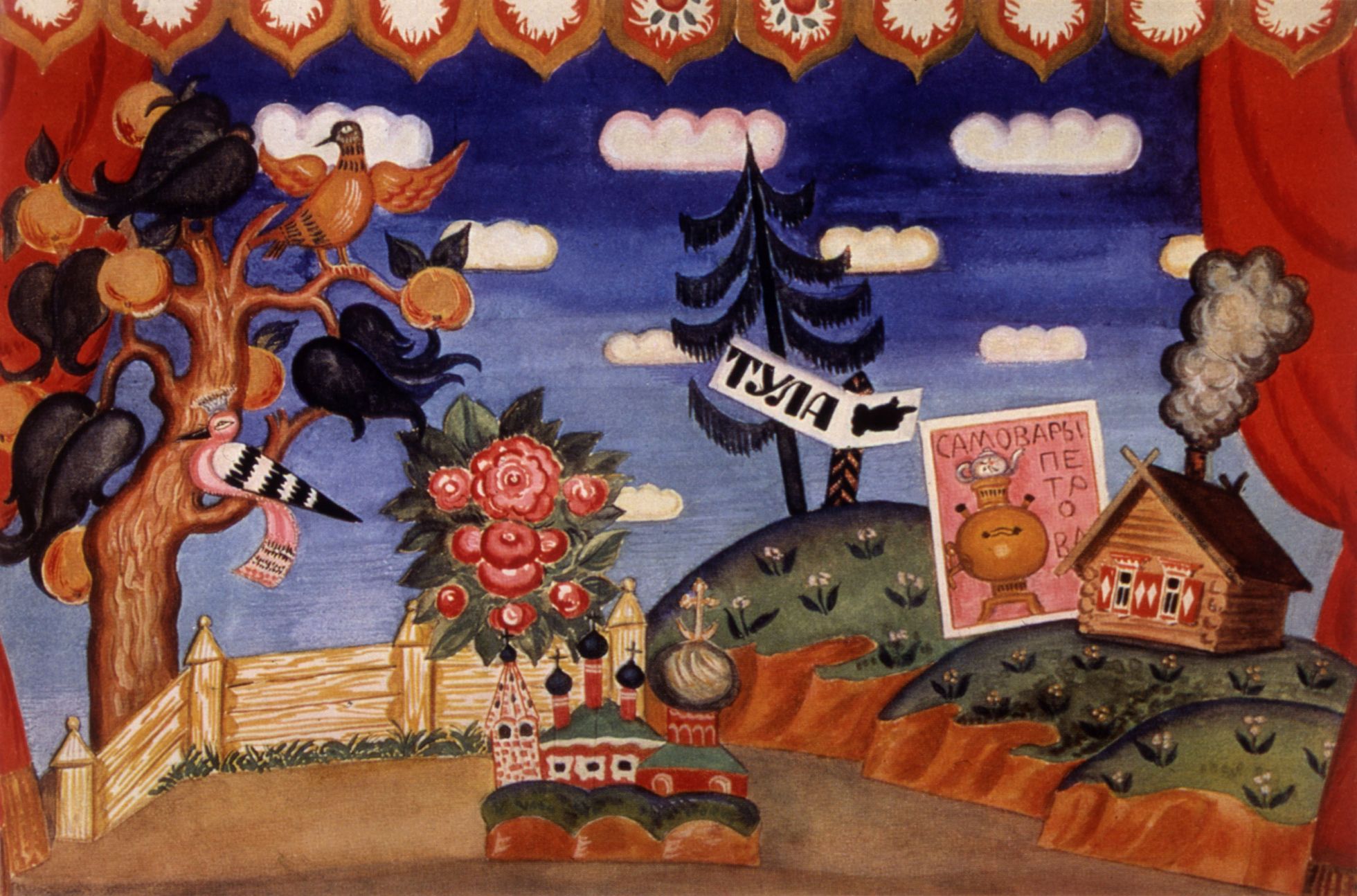 Навыки сценографии Кустодиев получил в 1907–1908 годах в Императорском Мариинском театре у Александра Головина, мастера стилизации и поклонника визуальной эстетики ускользающей Российской империи (самая знаменитая его работа — декорации к «Маскараду» Всеволода Мейерхольда). Талант Кустодиева-сценографа оценил и Константин Станиславский: он пригласил его в Художественный театр, и в 1914 году Кустодиев в качестве художника выпустил там «Смерть Пазухина» — спектакль много лет шел с успехом и даже два раза возобновлялся позднее. В общем, бэкграунд у Кустодиева как у сценографа уже был: за всю жизнь он оформил около 40 спектаклей, 20 из них удалось довести до премьеры. Но «Блоха» стала вершиной его театральной карьеры.